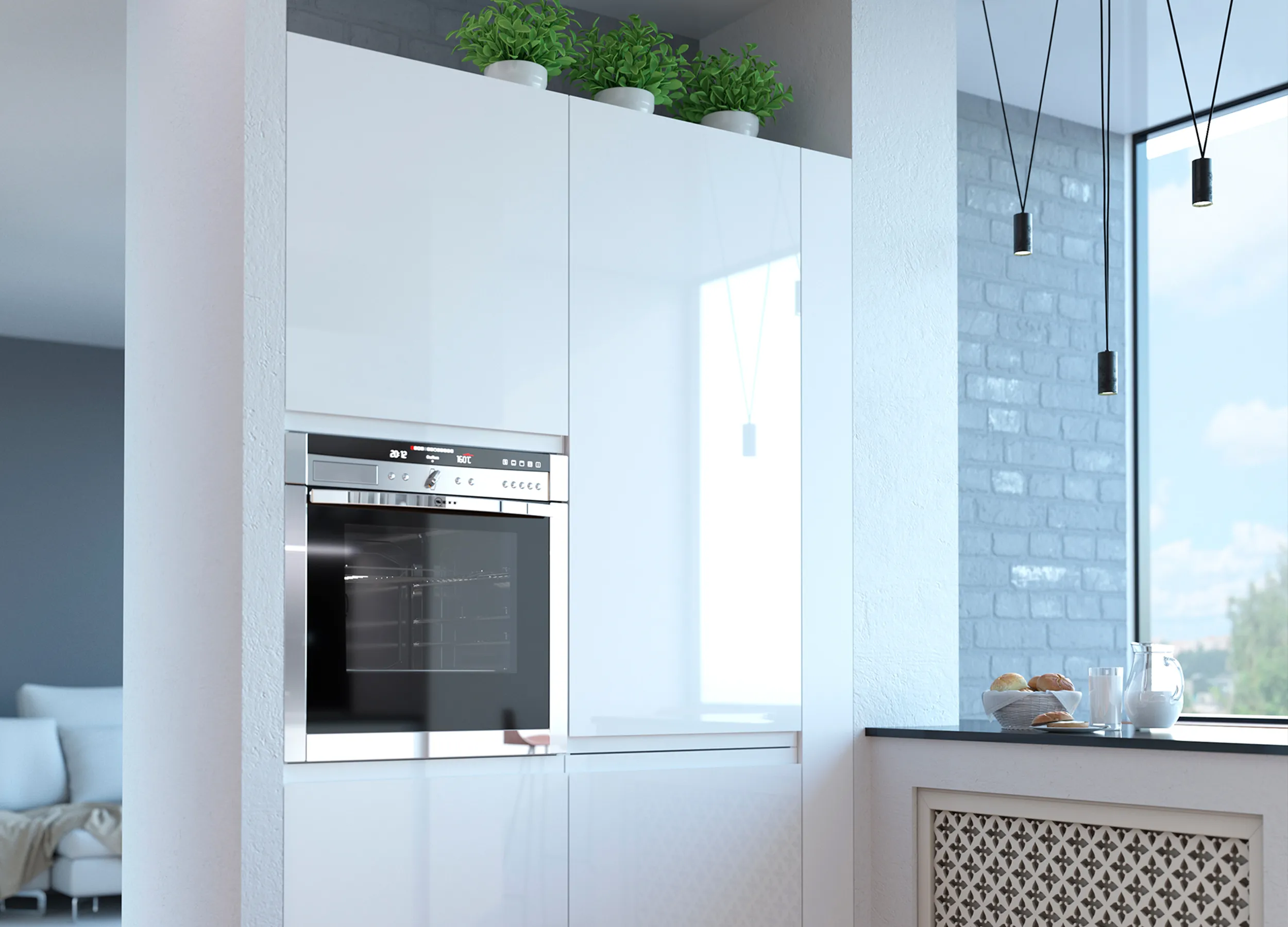 Говоря о белой мебели, нельзя не сказать о необходимости частой уборки, ведь дом с такими ослепительными поверхностями обязывает к чистоте и порядку. Поэтому если у вас маленькие дети, которые ходят с беспорядком рука об руку или домашние животные с темной шерстью, хорошенько все обдумайте и взвесьте. Глянец будет отражать предметы перед собой – эта способность помогает расширить пространство помещения. Но и минусом он тоже обладает – отпечатки пальцев видны на нем так же хорошо, как на зеркале. Поэтому не забудьте предусмотреть ручки для глянцевого фасада.