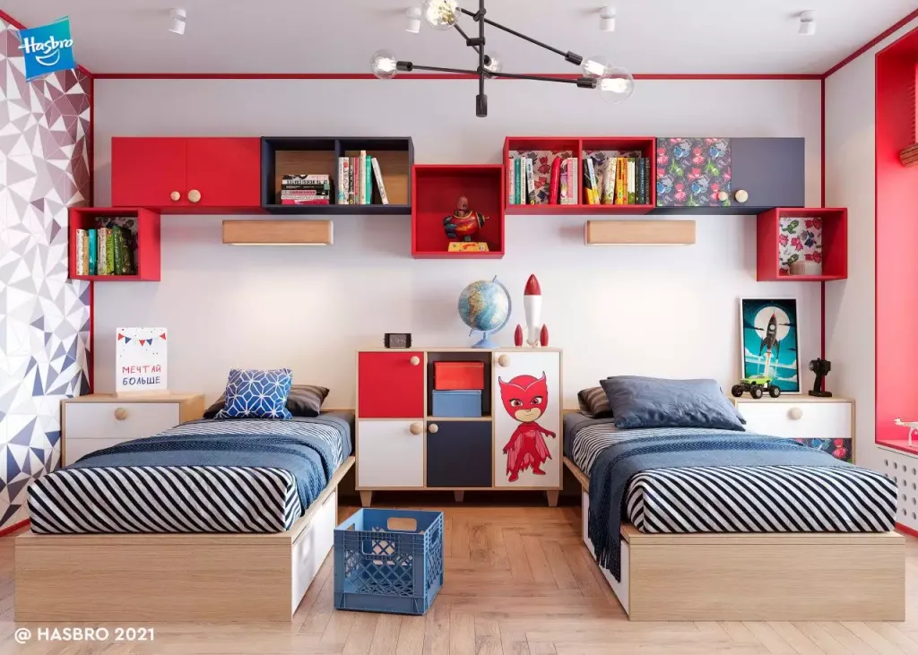 Чем больше разница в возрасте между детьми, тем сложнее обеспечить им комфорт при проживании в одной комнате, ведь нужно не только учесть потребности каждого, но и обеспечить разделение и безопасное хранение вещей, книг и прочего.