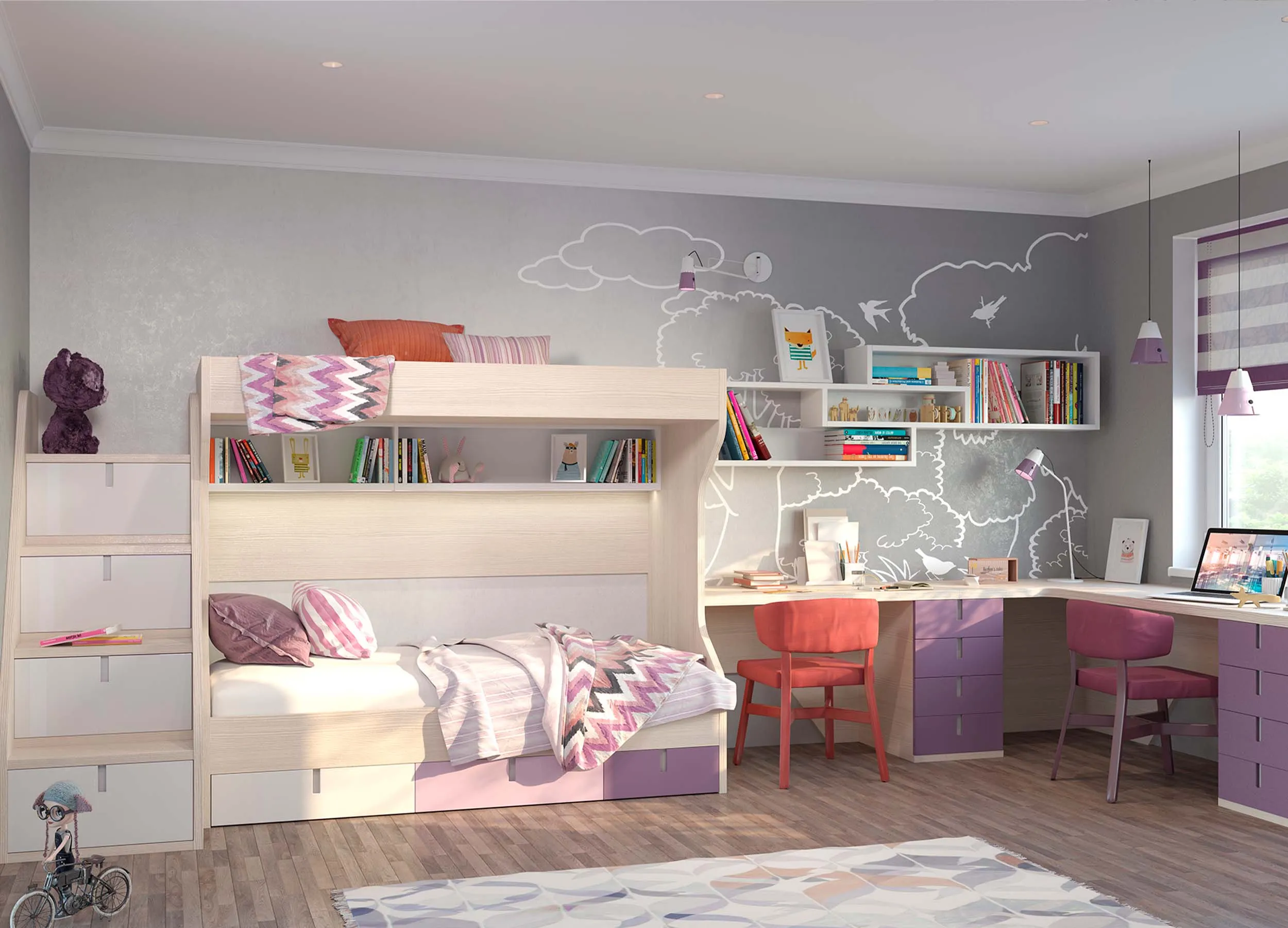 Детская, дизайн которой выполнен с умом, станет любимым местом пребывания вашего ребенка. Продумать все детали и не совершить ошибок в создании такого важного места непросто. Обратитесь за помощью в ближайшее ателье мебели Mr. Doors. Дизайнеры компании с удовольствием ответят на все ваши вопросы, помогут правильно расставить мебель, подобрать наилучшие цветовые сочетания и конечно же не забудут об эргономике, особенно важной для растущего ребенка.
