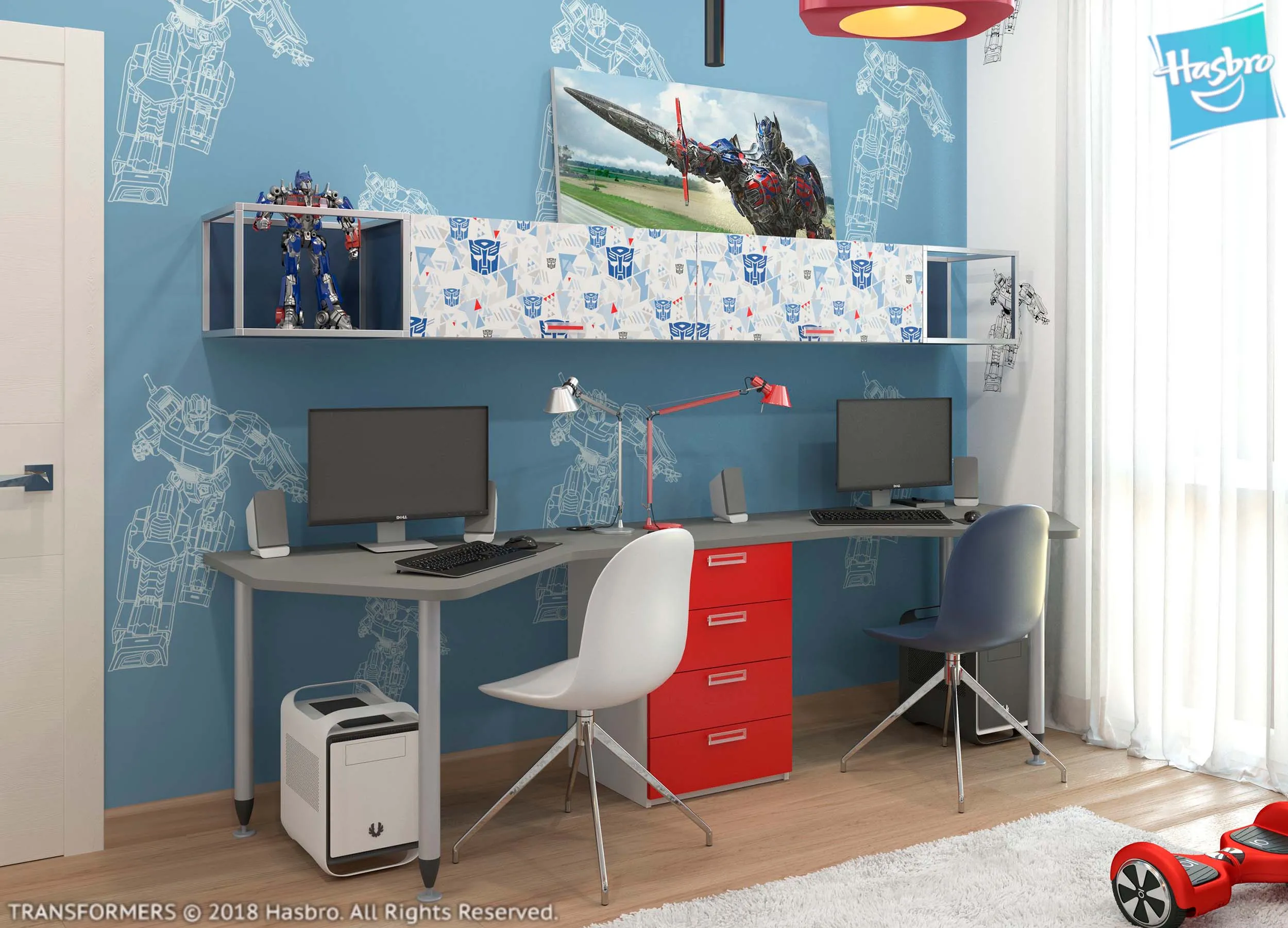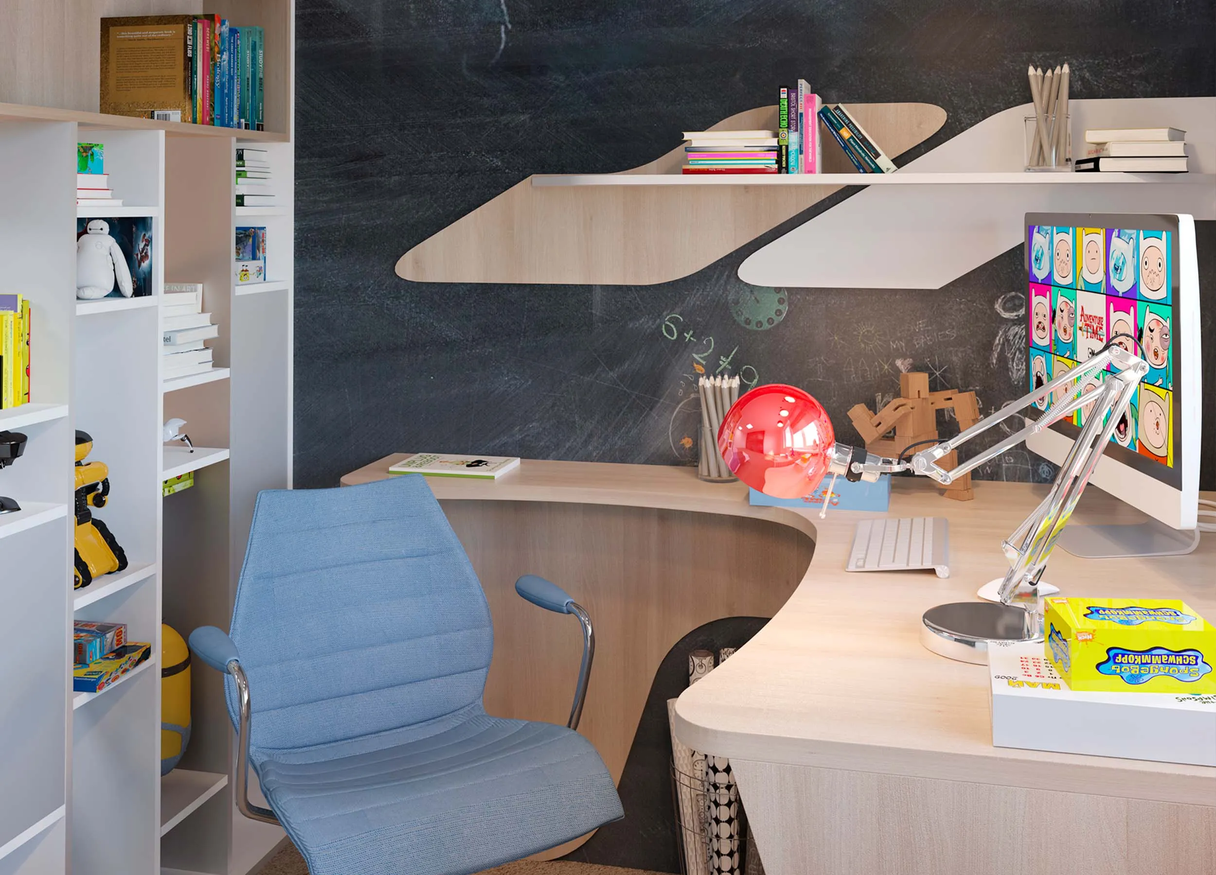 Особое внимание нужно уделить письменному столу. Он должен быть не только комфортным, но и интересным для ребенка, поскольку усадить маленького непоседу за уроки бывает непросто.