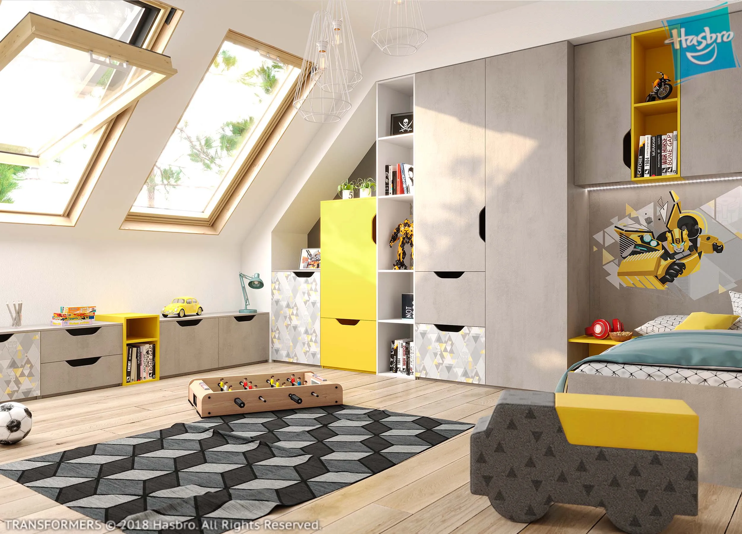 Однако, подобная стилизация не значит, что вам нужны обои с динозаврами или индейцами. Постарайтесь воплотить свою идею в деталях. Например, поставьте в игровой зоне футбольные ворота, а для визита гостей приобретите стильные кресла-мешки в форме мячей.