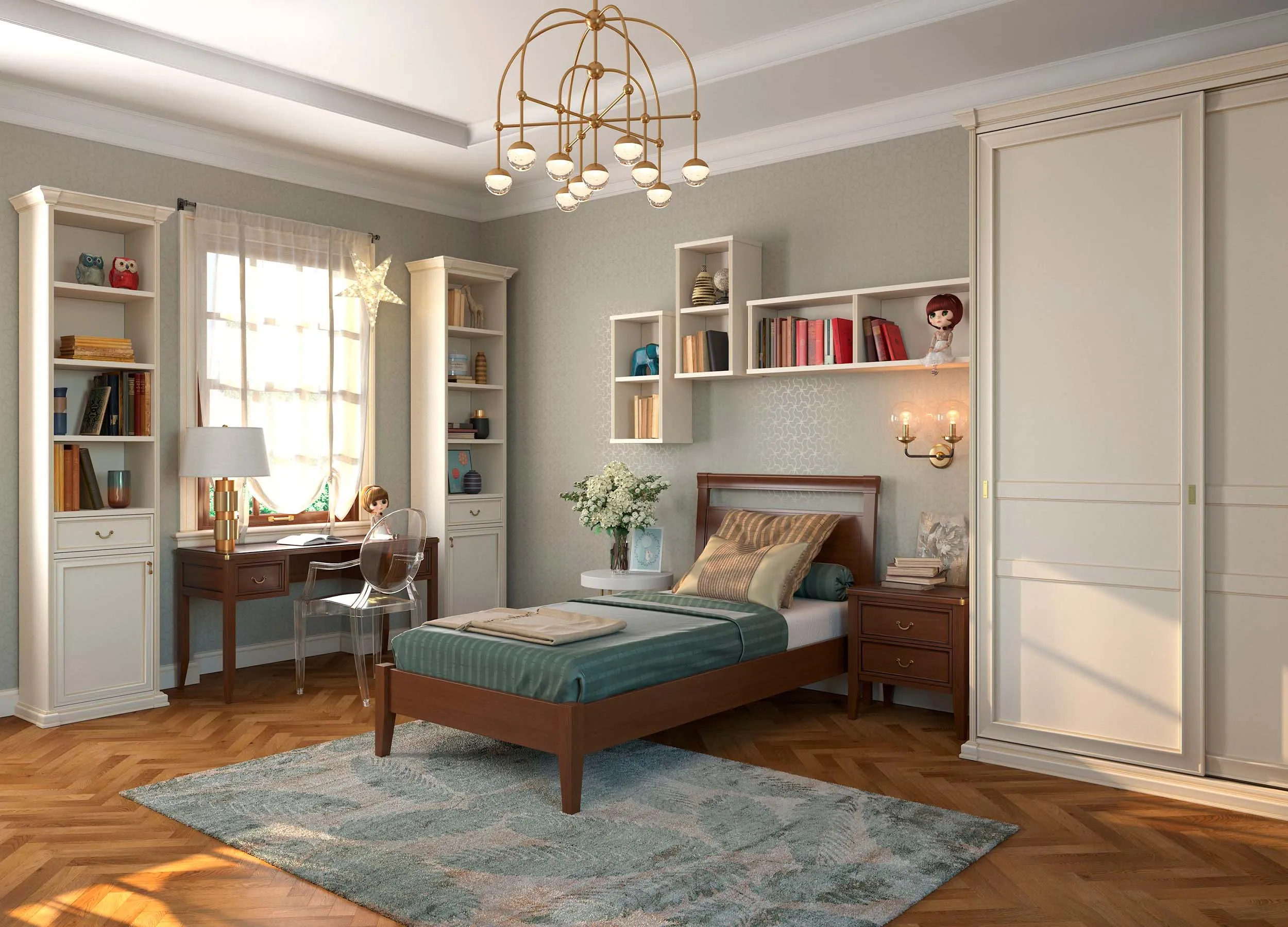 Детская, дизайн которой выполнен в классическом стиле, традиционно считается «девчачьей». Специалисты компании Mr. Doors не раз успешно опровергали такое мнение, создавая стильные спальни для юношей, выдержанные в этом стиле. Посмотреть варианты детской, дизайн которой выполнен в классическом стиле, вы можете на страницах электронного каталога.