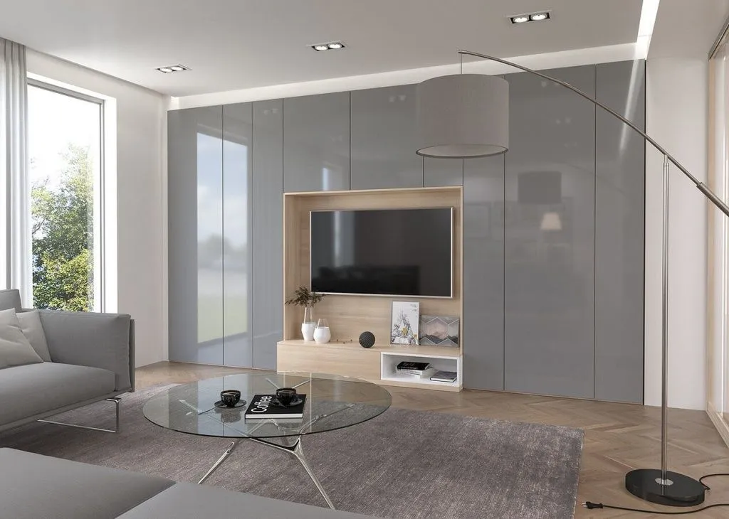 Если вы отдаете предпочтение мебели в более современном духе, обратите внимание на минималистичные и функциональные модели Mr. Doors, которые не выглядят громоздкими и гармонично впишутся в актуальный интерьер. Фото дизайна шкафов-купе для гостиной, выполненных в таком стиле, можно посмотреть ниже.