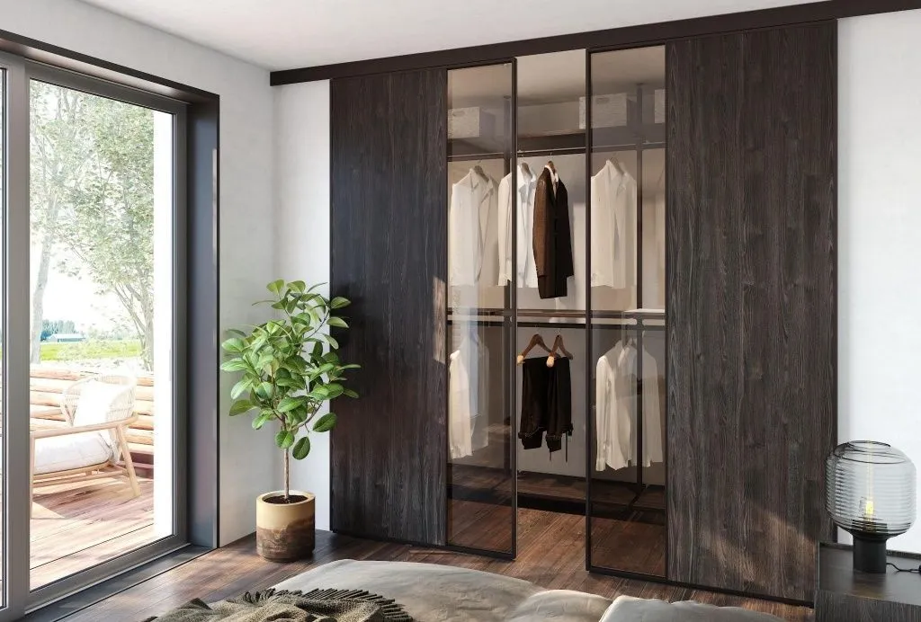 Если место в спальне ограничено и конструкция распашного варианта не подходит, то можно обратить внимание на модели-купе с раздвижными дверцами.