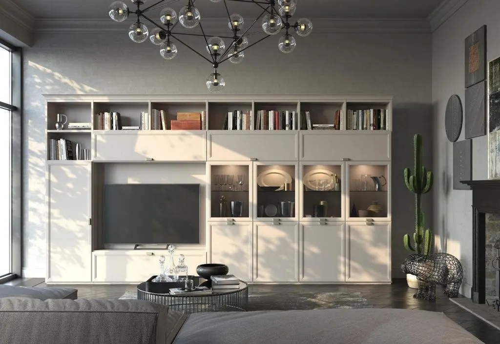 Фото дизайна книжных шкафов, представленное выше, отражает современную тенденцию придавать образцам с классической отделкой более современные простые формы.