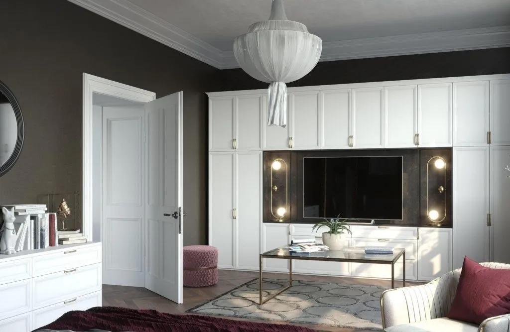 Начнем с самого общего запроса — «шкаф дизайн в интерьере фото». Под таким запросом чаще всего подразумевают модели, которые подойдут в любую комнату, будь то спальня, кабинет или гостиная. Приведем несколько примеров таких универсальных образцов.