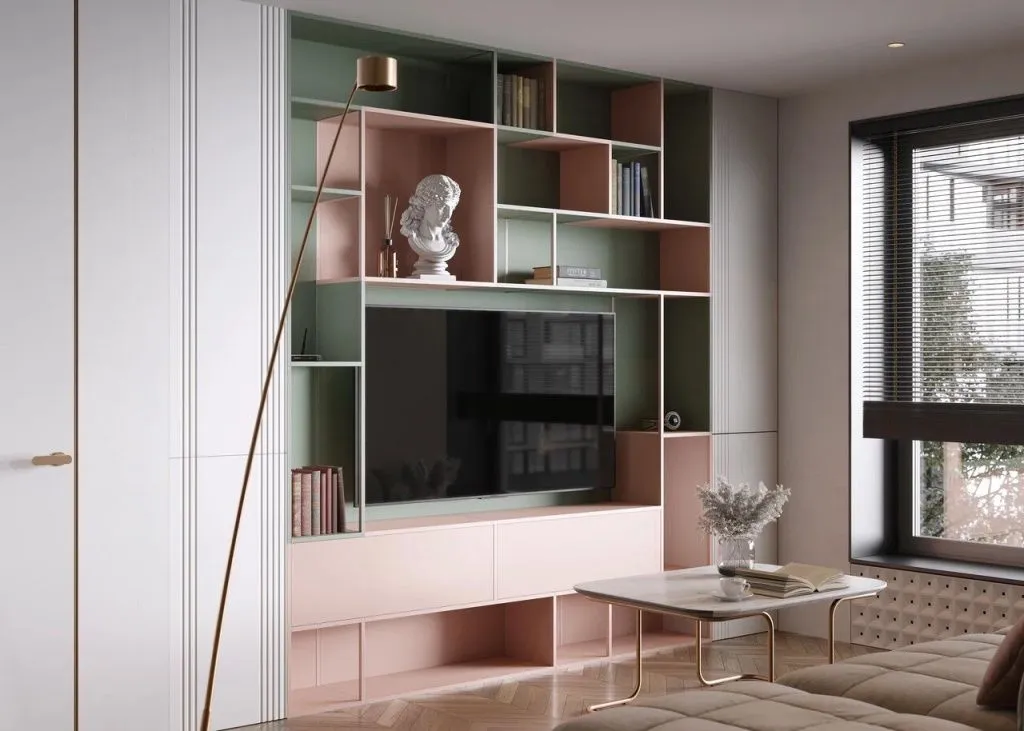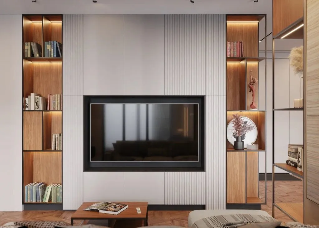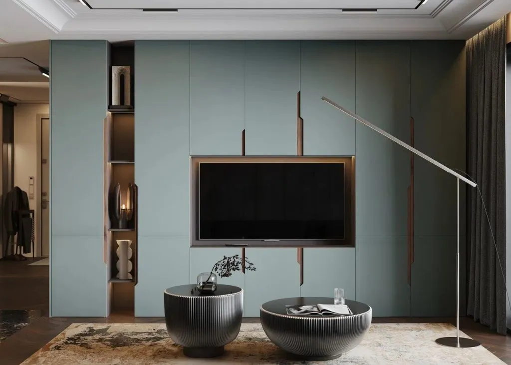 Современные материалы позволяют реализовать практически любой вариант оформления. Для стен можно использовать обои или краску. Для помещений среднего размера лучше всего подходят однотонные варианты. Уместны будут обои с мелким рисунком. Если вы хотите сделать акцентную стену (например, у телевизора), используйте молдинги и объемные панели.
