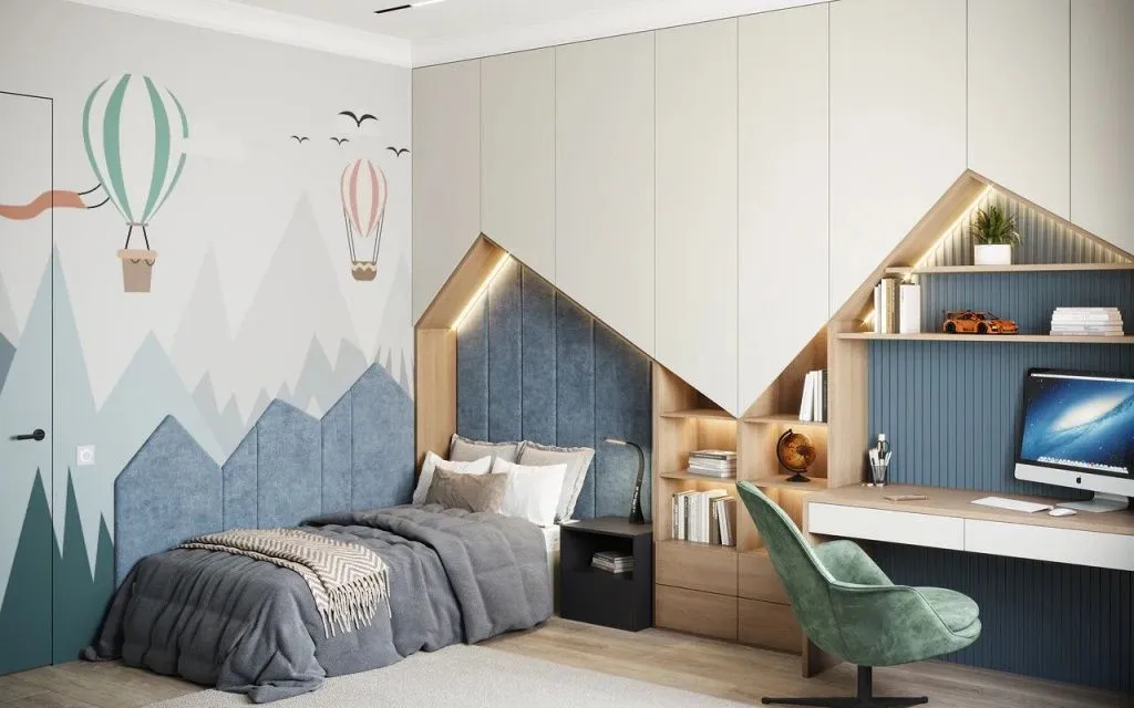 Детская комната 18 кв м дизайн должен быть выполнен с использованием экологически чистых материалов. Обои лучше выбирать флизелиновые или бумажные, они хорошо пропускают воздух. Стены дышат, на них не образуется плесень.