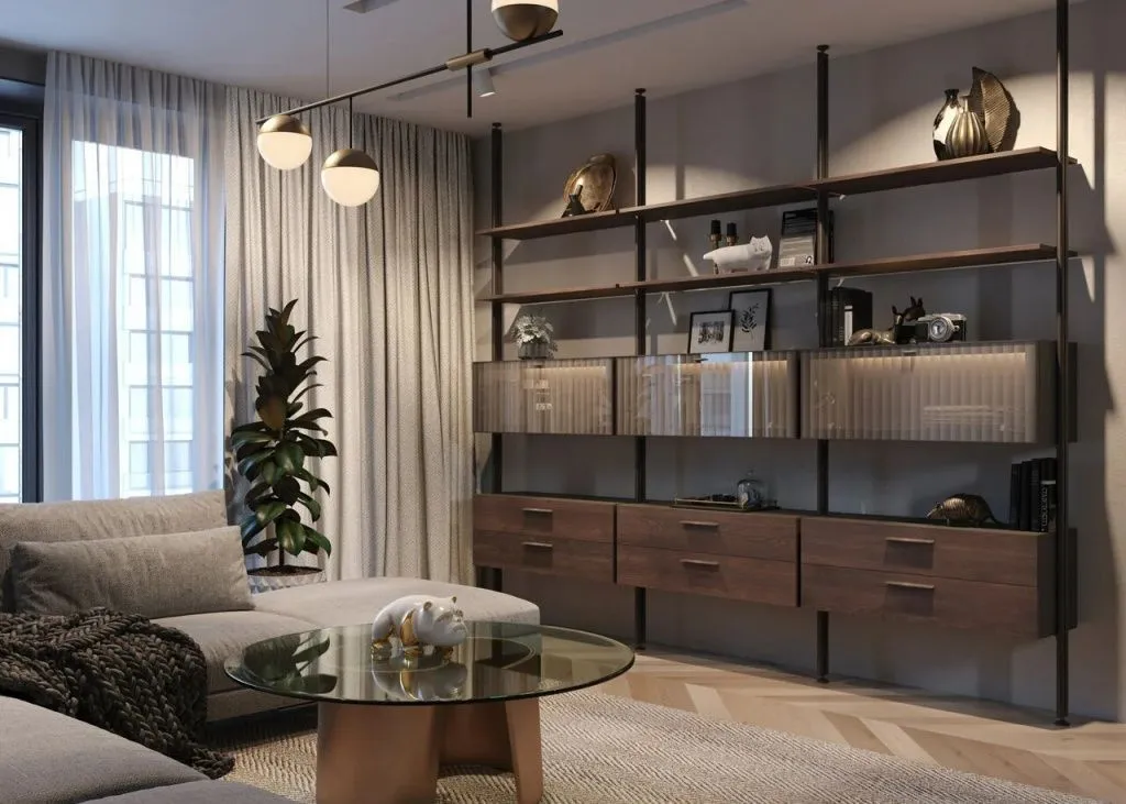 Дизайн квартиры студии с перегородкой может быть выполнен в нескольких вариантах. Перегородка не обязательно должна быть монолитной. Дизайнеры предлагают следующие идеи: