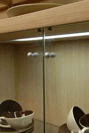 Вкладные распашные фасады обязательно комплектуются амортизатором, обеспечивающим плавное закрывание дверцы и играющим роль упора-ограничителя, который не позволяет дверце проваливаться внутрь.Накладные фасады также обязательно снабжены амортизатором, не позволяющим дверце удариться о раму даже при сильном толчке.