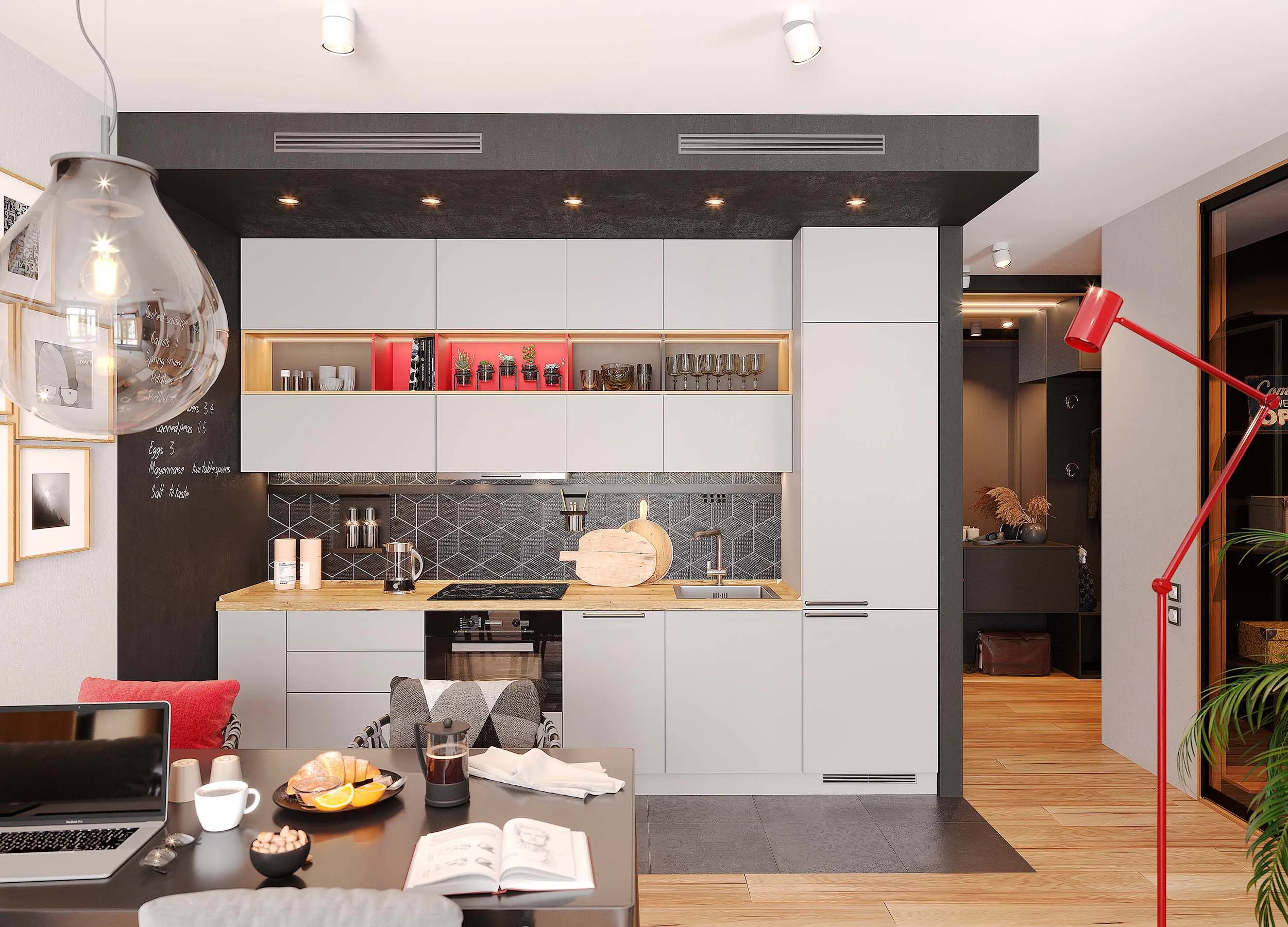 Формирование цветовой палитры помещения должно осуществляться на базе правила трех цветов. Хочется ярких акцентов — определитесь с основным тоном для фасадов, два других же пусть будут нейтральными (все оттенки белого, серого, бежевого и оливкового).