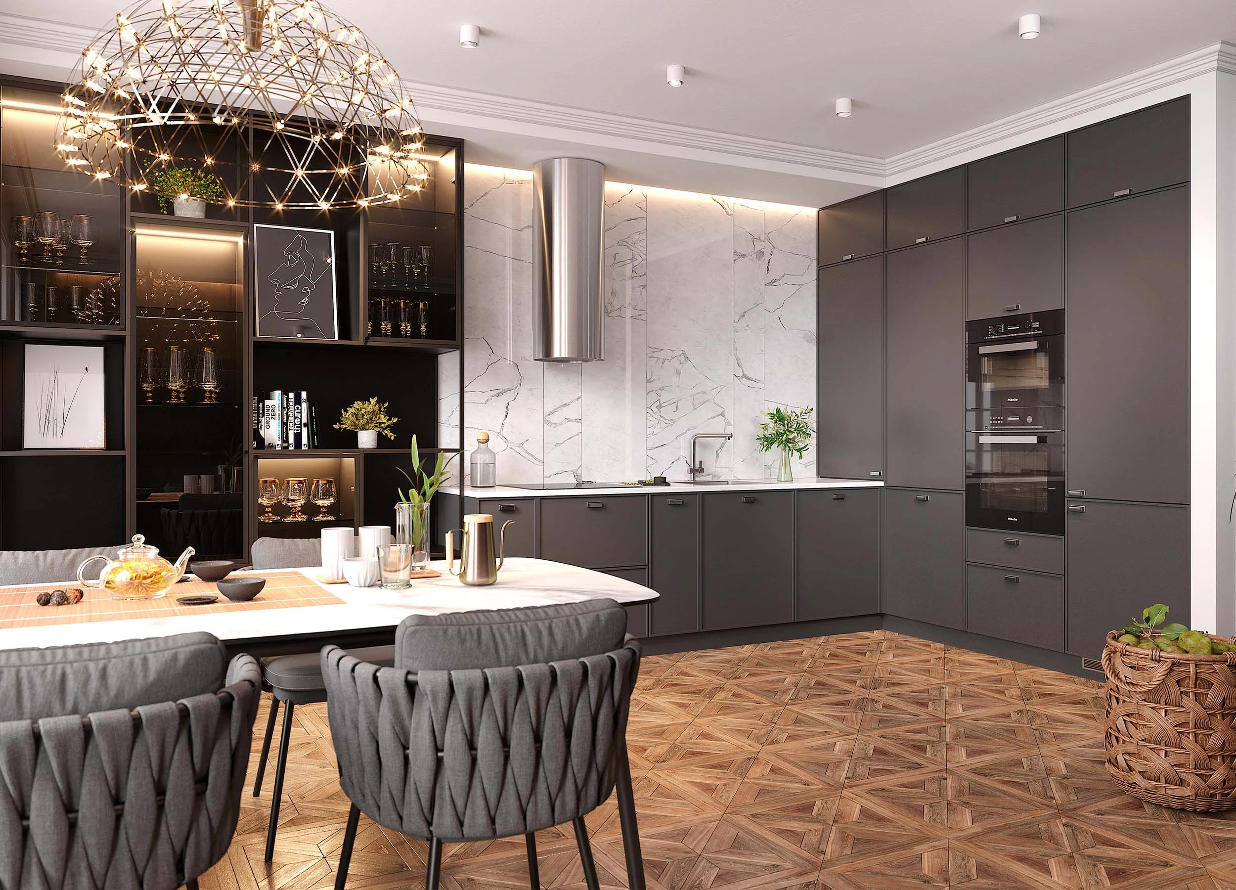 Команда профессионалов Mr.Doors изготовит мебель для кухни специально для вас. Несмотря на возможность производства сборных кухонных модулей, мы не отказываем своим клиентам в подетальном проектировании кухонь тоже.