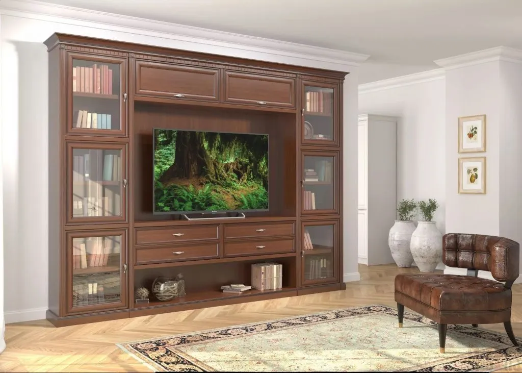 Мебель в гостиной служит для хранения посуды, книг, предметов декора или коллекционирования предметов хобби кого-нибудь из членов семьи. В одном из отделений вы сможете устроить мини-бар.