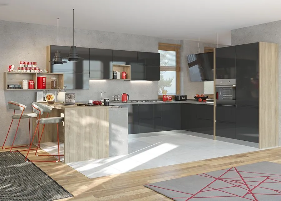 Угловая мебель лучше всего подходит для кухни. Она позволяет задействовать максимальное пространство помещения рационально. Получается большое количество шкафчиков, которые можно задействовать для организации хранения кухонной утвари.