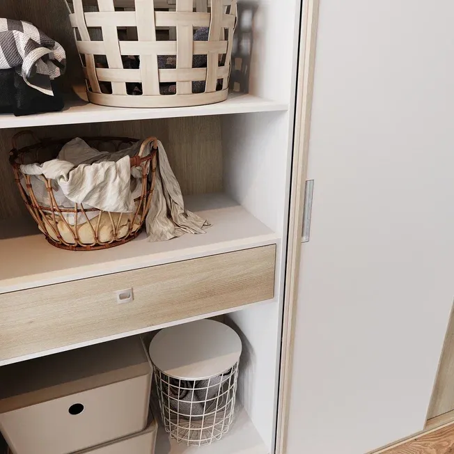 Такая мебель не только поможет хранить в идеальном порядке одежду и обувь, но и скроет недостатки планировки комнаты. Ее можно разместить в нише или использовать в качестве перегородки для зонирования помещения.