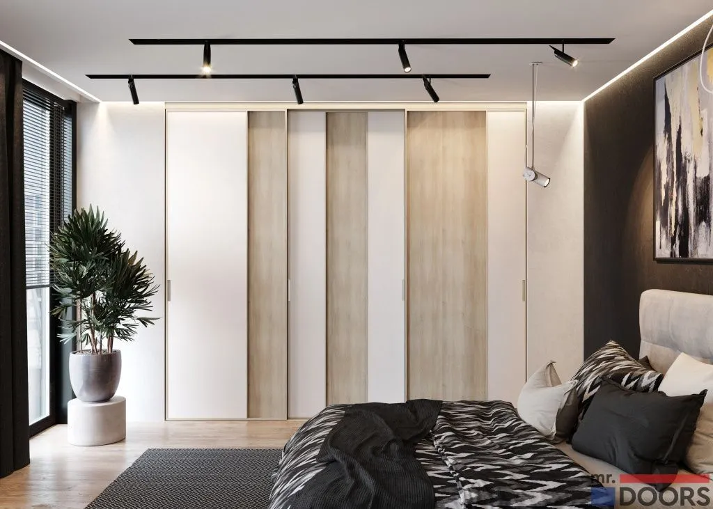 В зависимости от способа открывания двери есть шкафы-купе, распашные. При установке мебели с распашными дверями нужно учитывать место, необходимое для их открывания. Главной особенностью шкафа-купе являются раздвижные двери. Они позволяют получить доступ ко всему содержимому, не требуют наличия свободного места перед шкафом. Их использование в оформлении комнаты - это возможность более рационально использовать пространство помещения. Например, расположить рядом кровать или тумбы для телевизора.