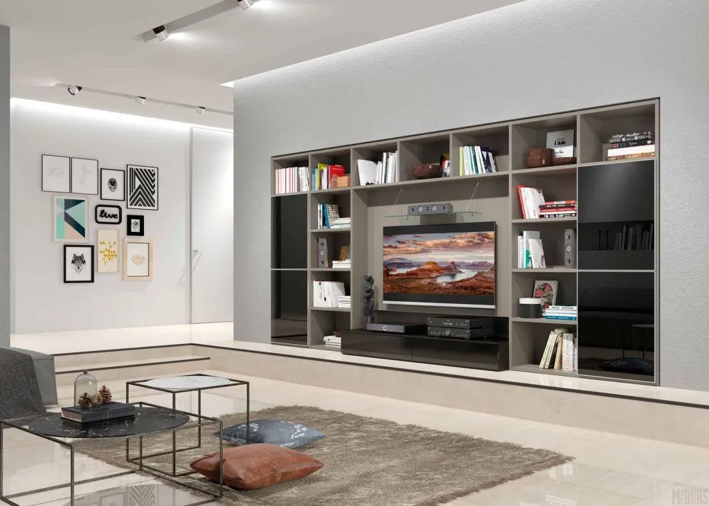 Самое главное при выборе встроенной мебели – определиться с ее местоположением, так как сделать перестановку в комнате не получится. Наличие открытых полок позволяет расположить нужные ежедневно мелочи или предмет интерьера.