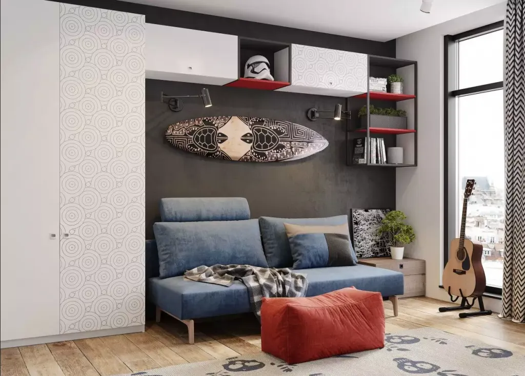 Ваши варианты, как обустроить комнату подростка, лягут в основу дизайна помещения, но всё равно человек переделает её под себя — с помощью личных вещей, постеров в рамках или прямо на стенах, коллекционных фигурок, комиксов, фанатского мерча и так далее. Лучше, чтобы изначально интерьер этому не противоречил. И вообще был максимально удобным фоном для украшения.