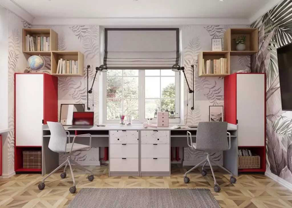 Два ребёнка — это всегда в два раза больше радости, но и удвоение сложностей при организации пространства. Важно понимать, что вариантом «поставить всю ту же мебель в 2 экземплярах» обойтись не получится — комната для двух подростков должна быть максимально функциональной при ограниченной площади.