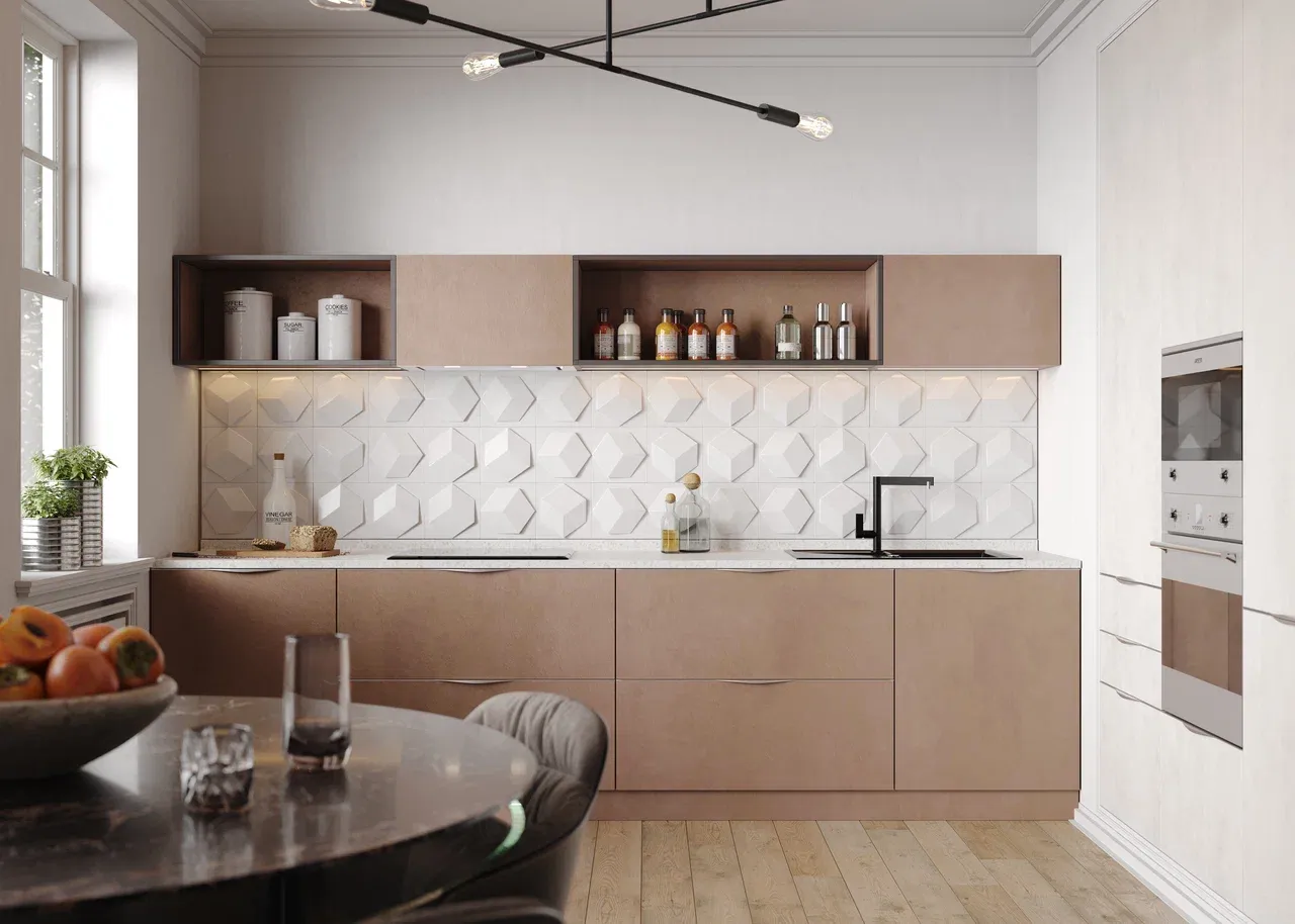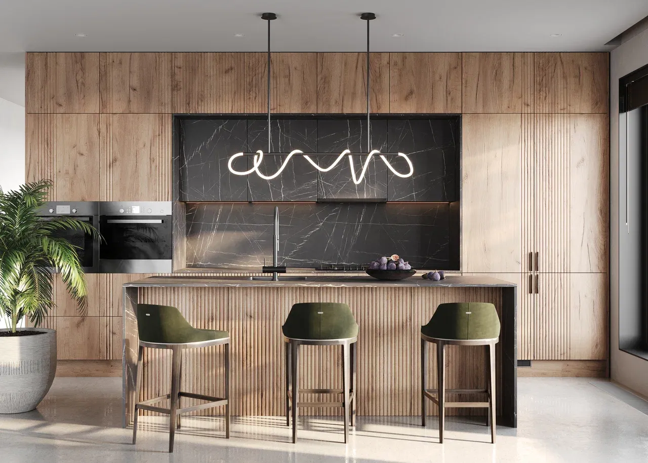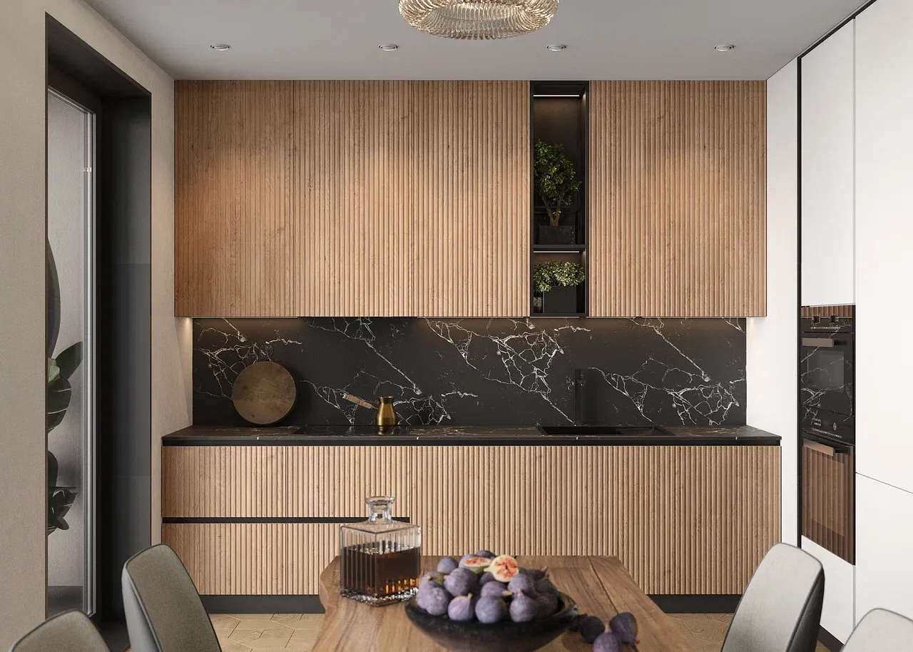 Используйте природные материалы: мебель из массива, столешницы из натурального камня, текстиль из льна, хлопка и шерсти. Такие элементы делают пространство более уютным.