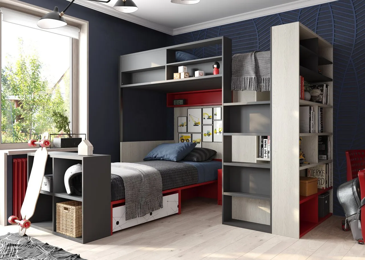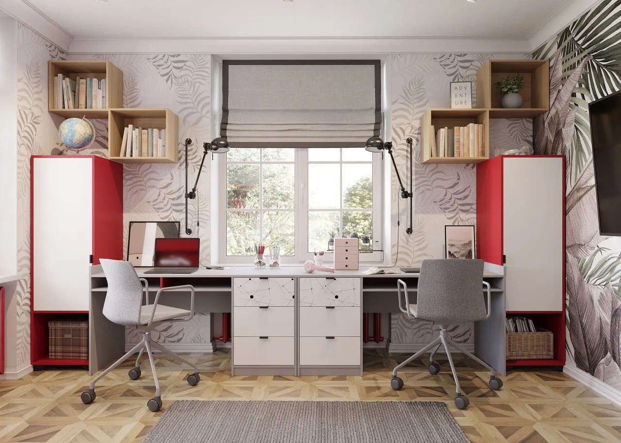 Игровая зона становится ненужной, а места для хранения одежды, книг теперь требуется больше. Рабочая зона современного подростка обычно включает в себя компьютерный стол и стул, шкаф, стеллаж или полки, а также письменный стол. Зачастую место под книги занимает большую часть помещения.