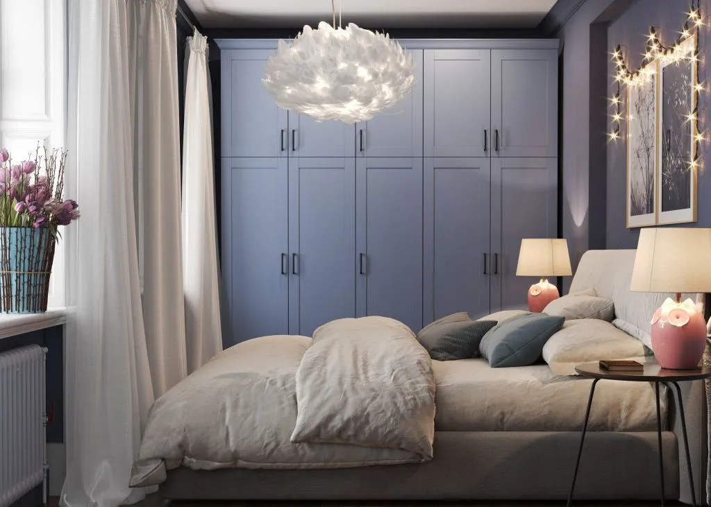 Обычно спальни маленькие по размерам. Именно поэтому желательно не выбирать объемные и тяжеловатые шторы, чтобы исключить перегрузку интерьера в компактной комнате. Много декоративных деталей может усложнить уход. На драпировках, ламбрекенах собирается пыль, что мешает нормальному сну.