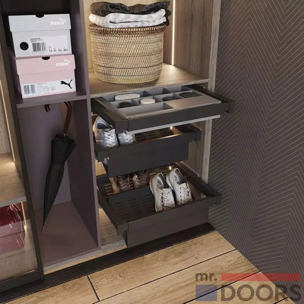 - Не забудьте о внутреннем освещении. Оно облегчит поиск нужной одежды и обуви.