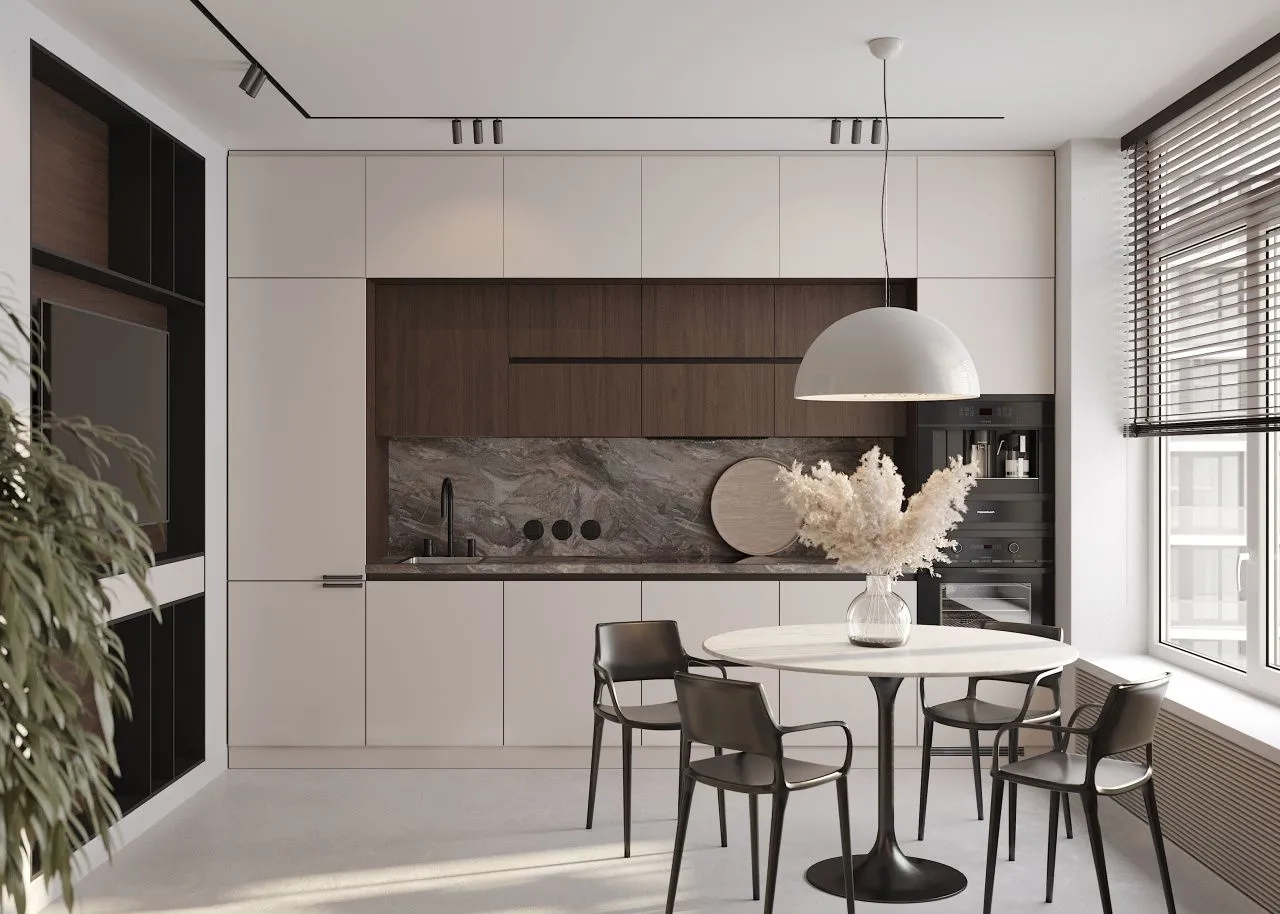 Кухни с островом минимализм>>>Возле стола можно поставить: