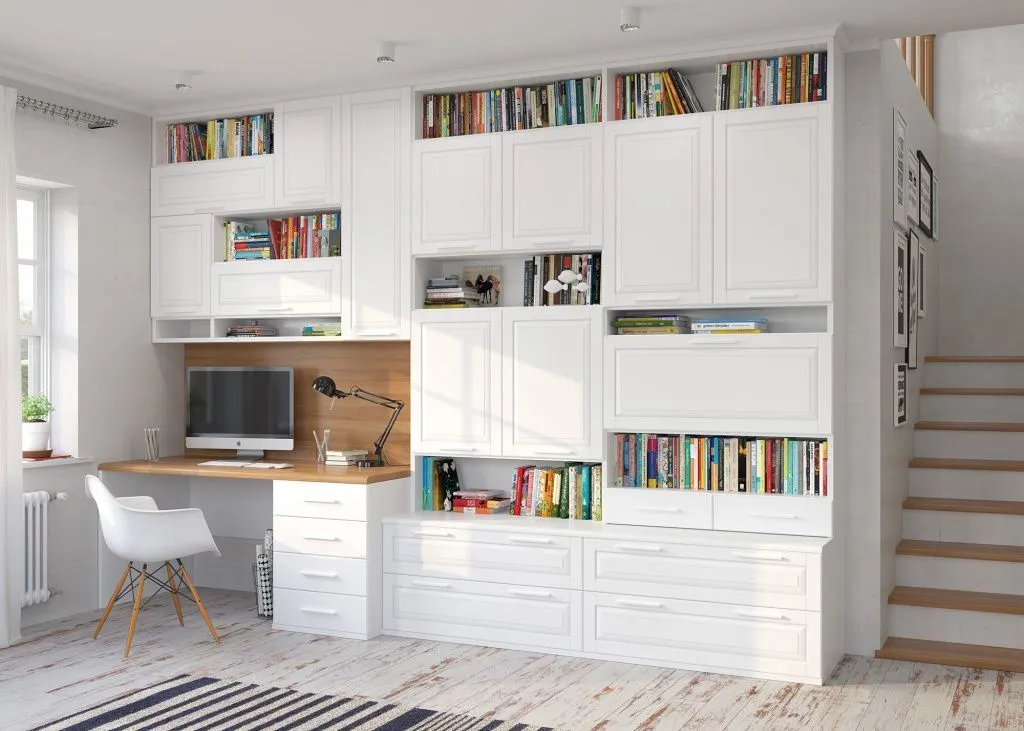 Традиционная мебель корпусная и неразборная. Но сейчас выпускаются модели, в которых полки и шкафы находятся автономно. Неразборные конструкции могут иметь отличия в размерах, комплектации, дизайне.
