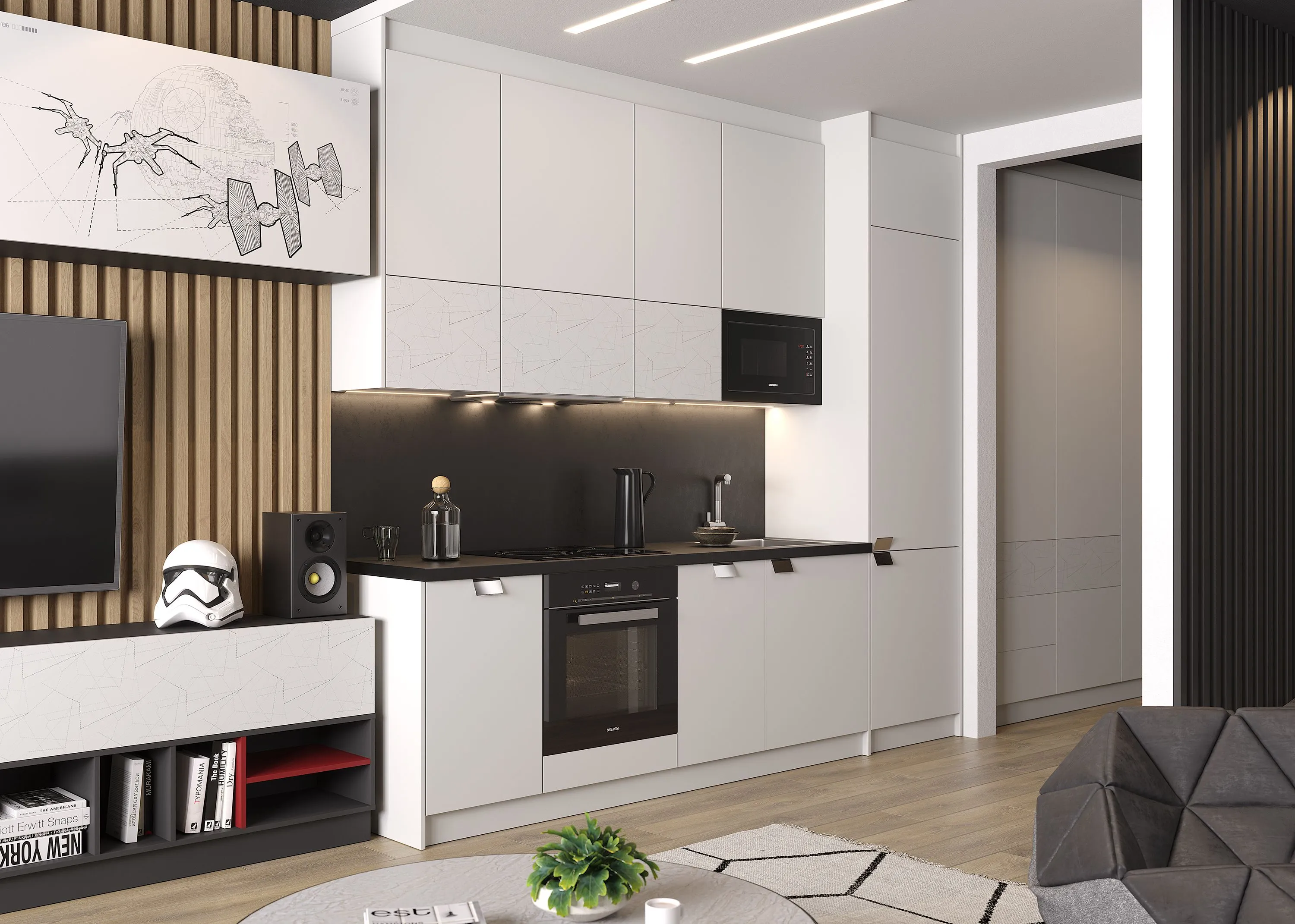 Кухни МДФ серые>>>Лучшим вариантом для данного типа помещения является безворсовый ковер на кухню. Он практичный, удобный, легко очищается. Длинный ворс очень хорош для спальни, детской или гостиной, но для обеденной или рабочей зоны он категорически не подходит. Пролитые жидкости, жир, упавшая еда – все это не только легко запутается в длинных нитях, но и очень трудно будет вычищаться оттуда. В результате – сильно и быстро ухудшающийся внешний вид покрытия, сложности с чисткой, появление неопрятных пятен и неприятного запаха. Поэтому лучше выбирать безворсовые изделия, циновки, плетеные или вязаные виды половиков. Можно выбрать стриженые варианты, разновидности гобеленов.