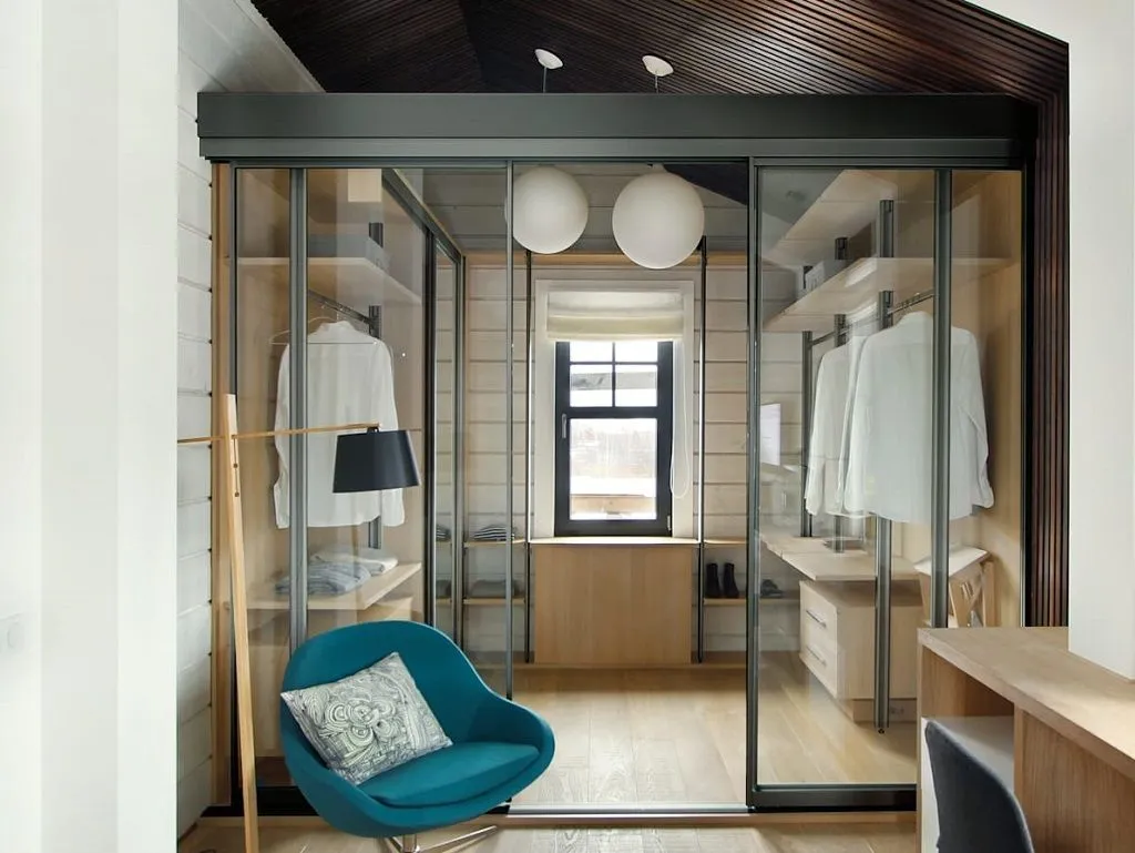Важнейшим пунктом в создании маленькой гардеробной комнаты является установка вентиляционной системы. Замкнутое пространство, лишенное свежего воздуха и солнечного света, может спровоцировать возникновение плесени или грибка. Особенно важно обеспечить воздухообмен в маленькой комнате, если в квартире высокая влажность.
