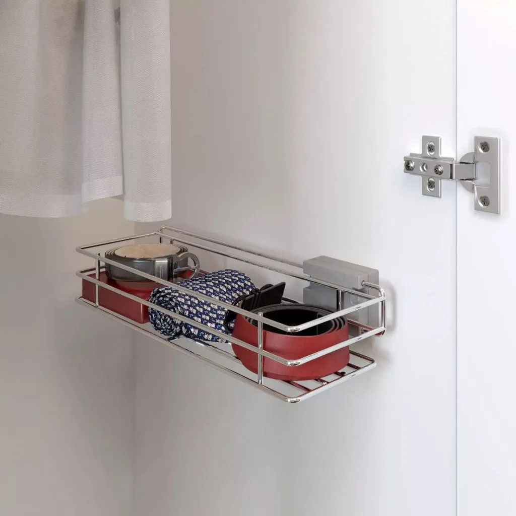 Выдвижная вертикаль для галстуков и ремней выполнена в декоре «Хром»