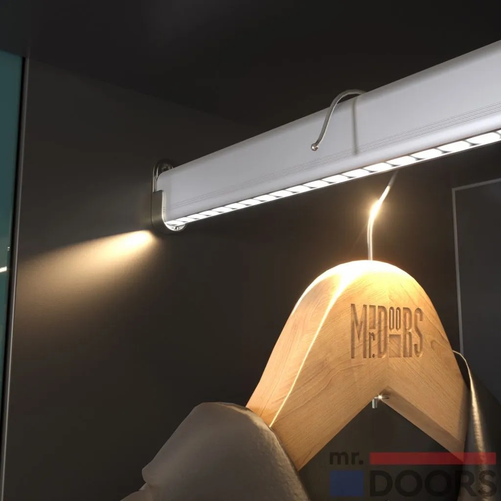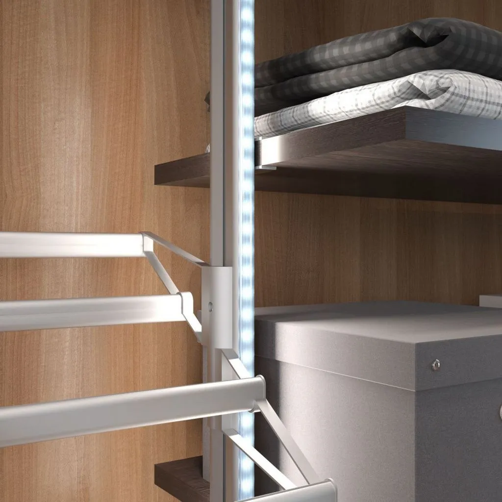 Штанга, дополненная встроенным светильником, позволит комфортно осмотреть все размещенные на ней вещи