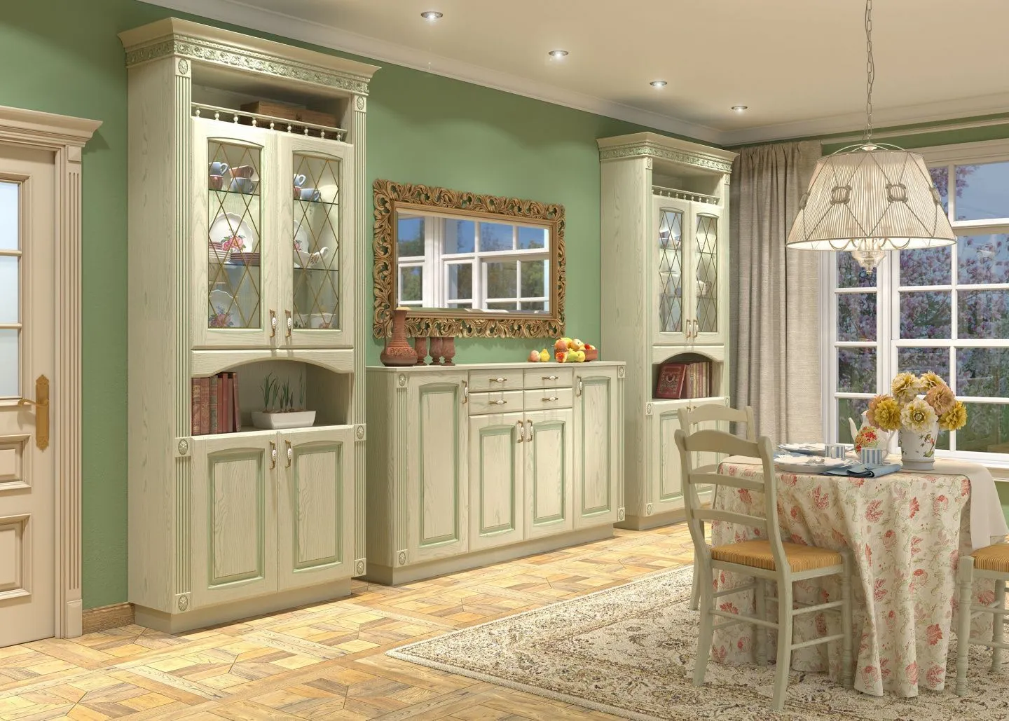Классический вариант размещения стола – у окна. Так вы сможете наслаждаться дневным солнцем за чашкой чая и любоваться видом во время дружеских посиделок с близкими.