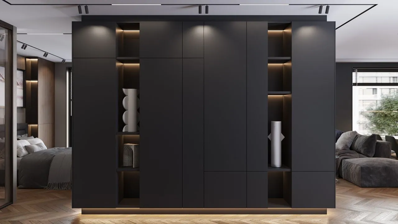 Вы можете сделать для мебельной подсветки отдельный выключатель, а можете заказать проект, в котором предусмотрено включение ламп при открывании дверей шкафа.