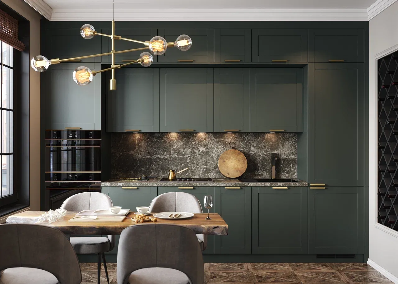 Облицовка краской подходит для различных зон на кухне, включая столовую, зону приготовления пищи.