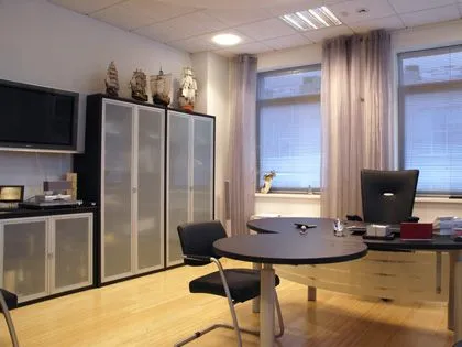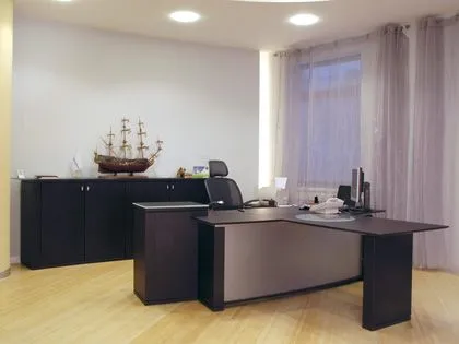 Особое внимание наши сотрудники уделили интерьерам кабинетов руководящего состава и переговорным залам. Элегантная строгость и современность интерьеров передают дух компании. Просторные помещения воплощают собой представительность и уверенность в будущем. В таком кабинете можно с гордостью принимать самых высокопоставленных лиц.