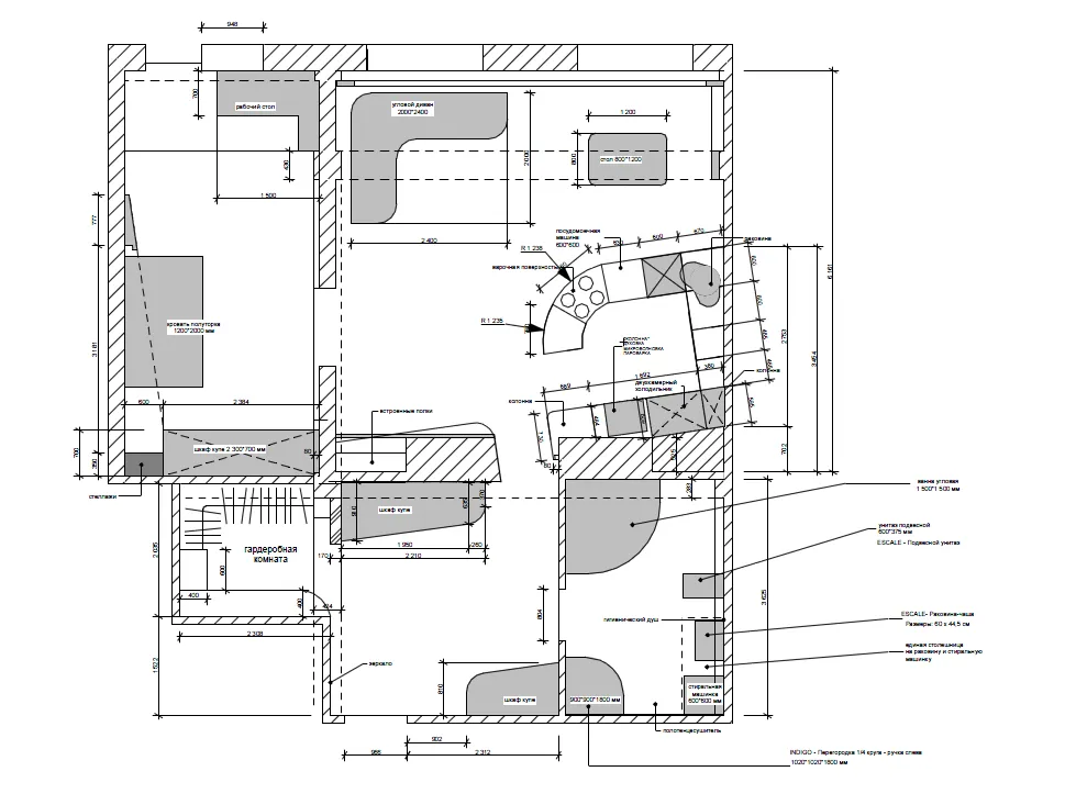Главной задачей при проектировании интерьера общей площадью 80 м2 это создание современного жилого пространства - непохожего и динамичного, для молодого человека, начинающего самостоятельную жизнь, лаконичное и без лишних трудно эксплуатируемых деталей.
