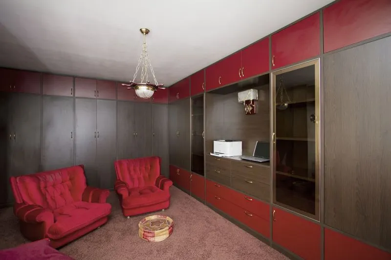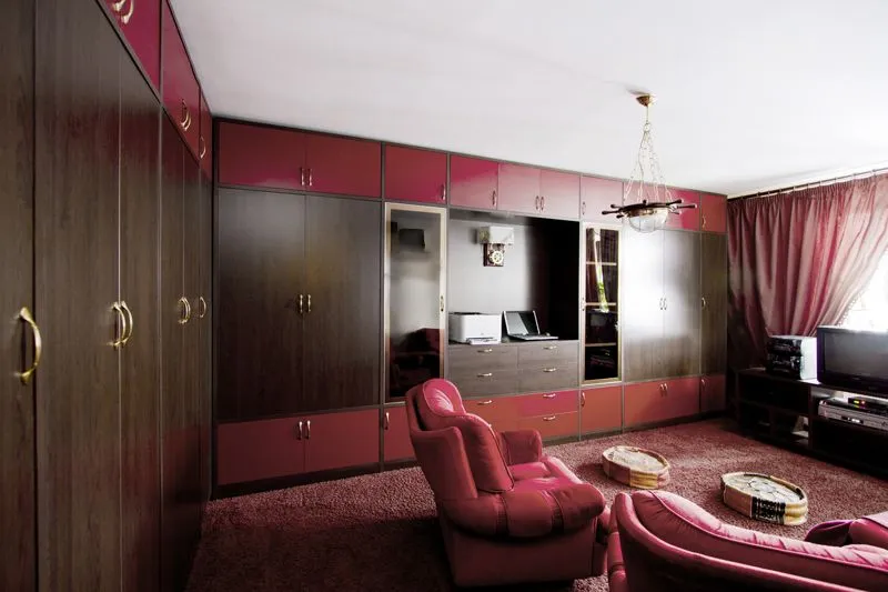 Компанией Mr.Doors изготовлены корпусная мебель с распашными дверями в цвете "Дуб Торонто", "Гренадин", вставки в распашных фасадах - стекло "Мокко".