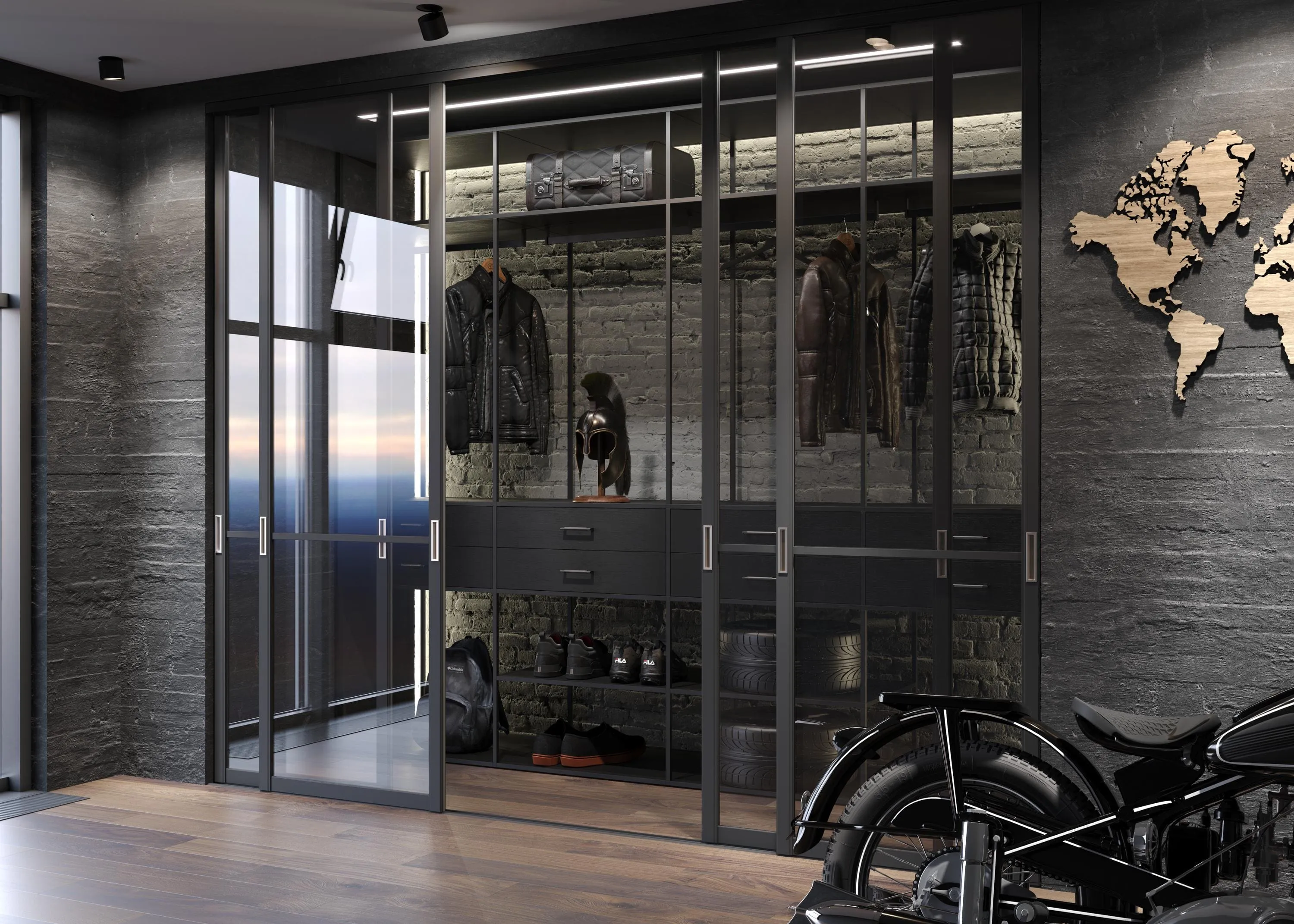 Шкафы-купе серые с зеркалом>>>Очень часто в офисных помещениях не ограничиваются обычными раздвижными дверями. Сейчас в моде раздвижные перегородки, которые по своим размерам существенно превосходят обычные раздвижные двери. Со стороны раздвижные перегородки смотрятся весьма стильно и необычно. Но не в этом заключается их главное преимущество перед обычными раздвижными дверями. Дело в том, что при помощи раздвижных перегородок можно трансформировать помещение. К примеру, можно из двух смежных помещений за пару секунд сделать одно большое. Или превратить кабинет руководителя и приемную в просторный конференц-зал или переговорную комнату. В итоге даже небольшой по размерам офис станет очень удобным с функциональной точки зрения. А прозрачные или полупрозрачные перегородки в офисе позволяют руководителю предприятия контролировать деятельность своих сотрудников.