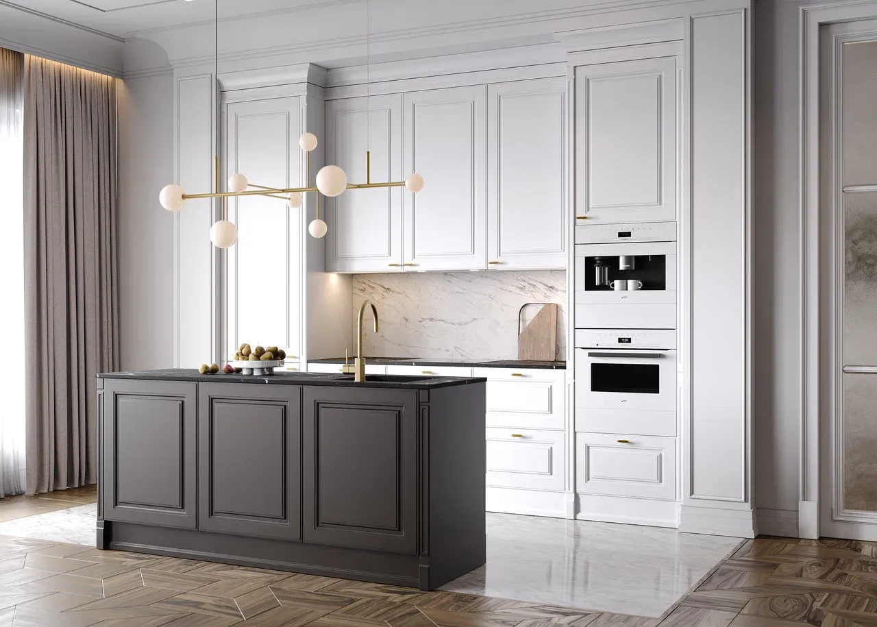 Если такой интерьер выглядит слишком подавляющим, обратитесь к неоклассике. Она во многом повторяет традиционные форму, но более демократична в выборе оттенков и материалов.