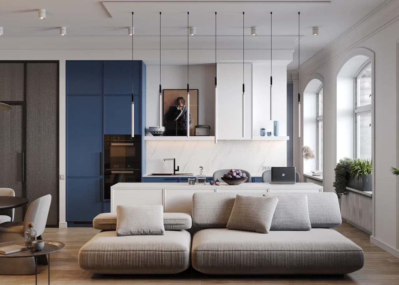 В скандинавском интерьере данный цвет обычно используется в сочетании с другими нейтральными оттенками, такими как белый, бежевый или светло-коричневый. Это создает эффект спокойствия и уюта в комнате, делая ее более приветливой и приятной для проживания. Кроме того, сочетание с белым помогает визуально расширить пространство, создать более светлый и просторный интерьер, который отражает натуральный свет и создает ощущение гармонии и баланса.