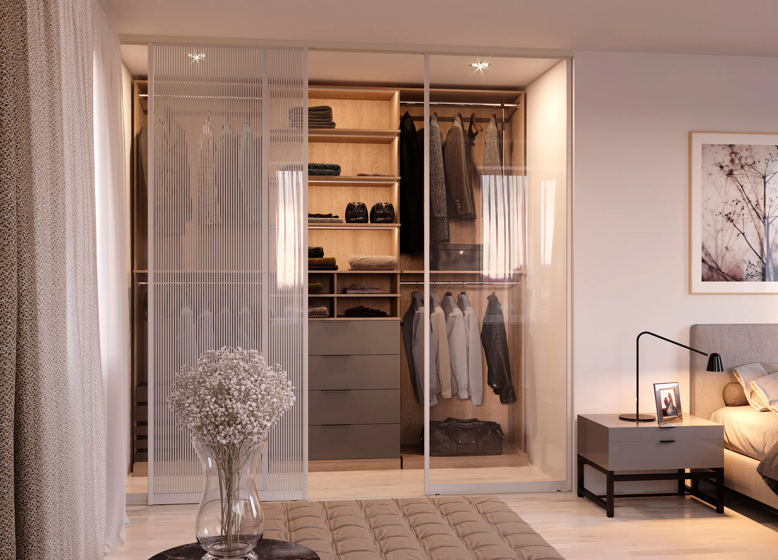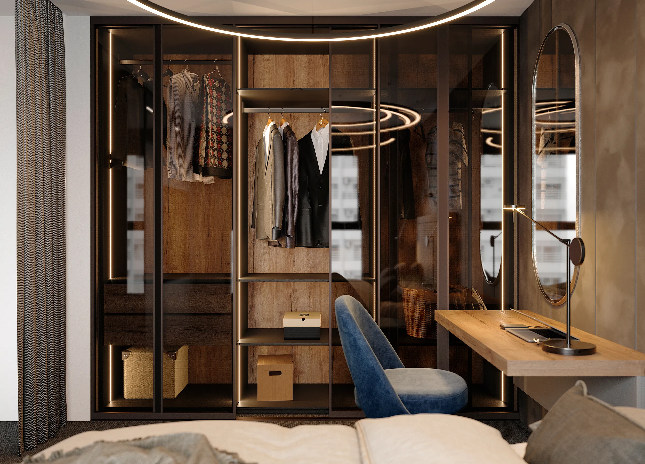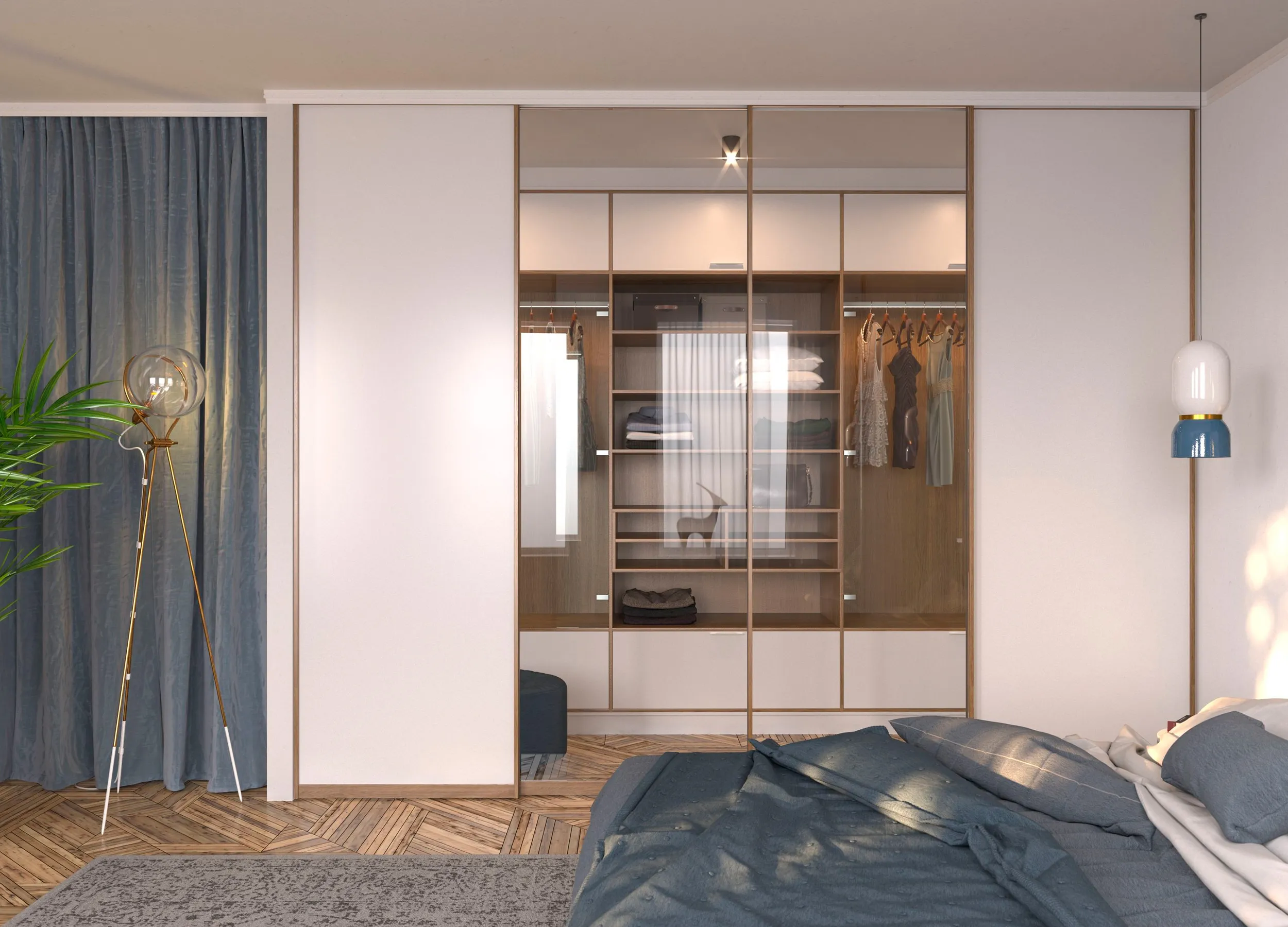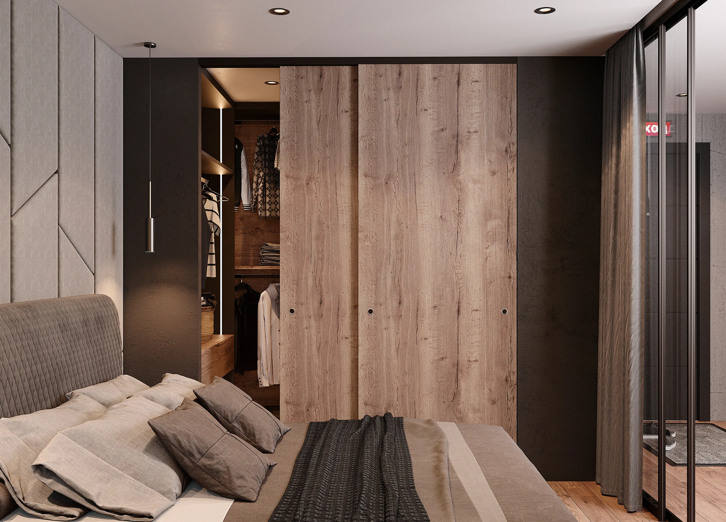 Все большую популярность при подборе мебели для спального интерьера приобретает встроенный купе.
