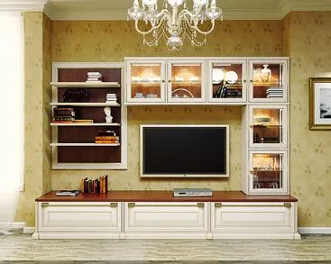 Все мебельные композиция в «Классике» проектируется на цоколе, а верхняя часть завершается декоративным карнизом.