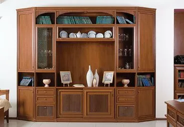 Отдельного внимания в системе «Классика» заслуживают стеновые панели (ламинированные, «Буазери», «Лакато»), с помощью которых можно декорировать стены помещения, придавая ему еще более классический вид. На стыке всех элементов стеновой панели – традиционные для системы «Классика» декоративные «замки». Стеновые панели могут располагаться между стеллажами или шкафами, в нишах или по периметру всего помещения.