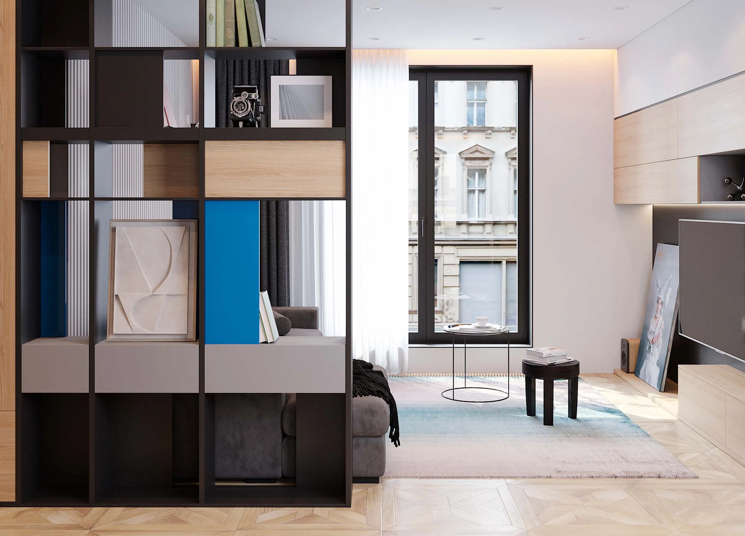 - правильная расстановка мебели, наличие дополнительных встроенных элементов;