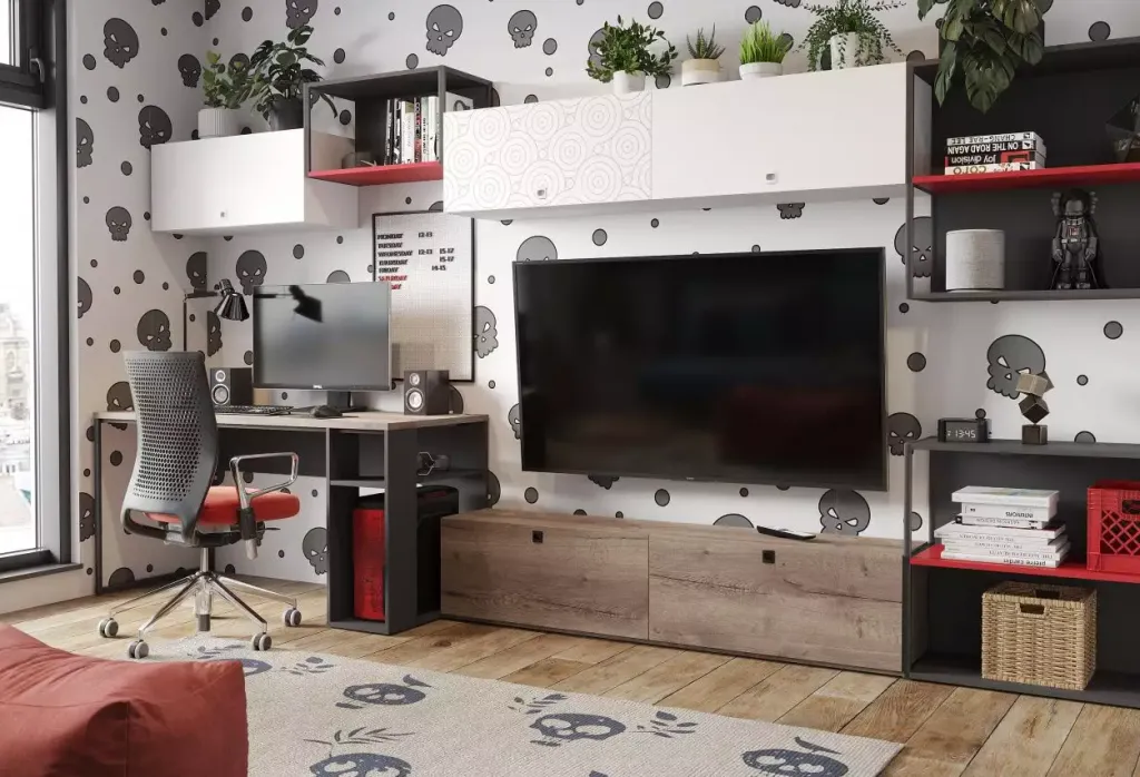 Для современных подростков, увлеченных компьютерными играми, хорошо подойдет детская комната в стиле хай тек. Это направление предполагает широкое использование новых технологий как в области электроники, так и отделки и материалов. Здесь будут хорошо смотреться пластиковые панели, неоновая подсветка, компьютерная техника и аксессуары для нее. Нередко такие интерьеры интегрированы с системой умного дома. Основным принципом в данном случае является упрощение жизни человека с помощью достижений современной техники.