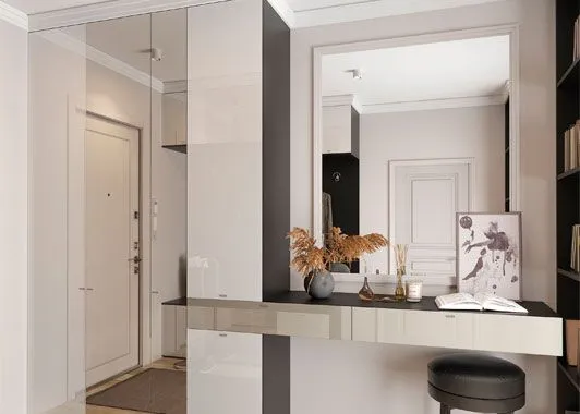 Удобным и удовлетворяющим всем условиям выбором может стать шкаф купе в прихожую. Такой шкаф может быть встроен в стену или установлен в удобное место, не занимая полезного пространства. Благодаря раздвижным дверцам, он не создаст неудобств, даже если в прихожей будет находиться довольно много народу. Удобная система полок и вешалок, характерная для качественных шкафов, позволит всегда сохранять порядок в находящихся там вещах и обеспечит удобство при их доставании. Дверки такого шкафа могут быть полностью зеркальными, что позволит с легкостью вписать его в интерьер и избавит от необходимости устанавливать отдельное зеркало.