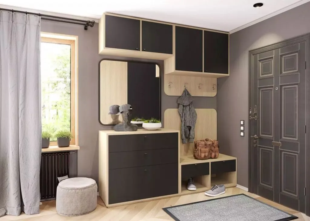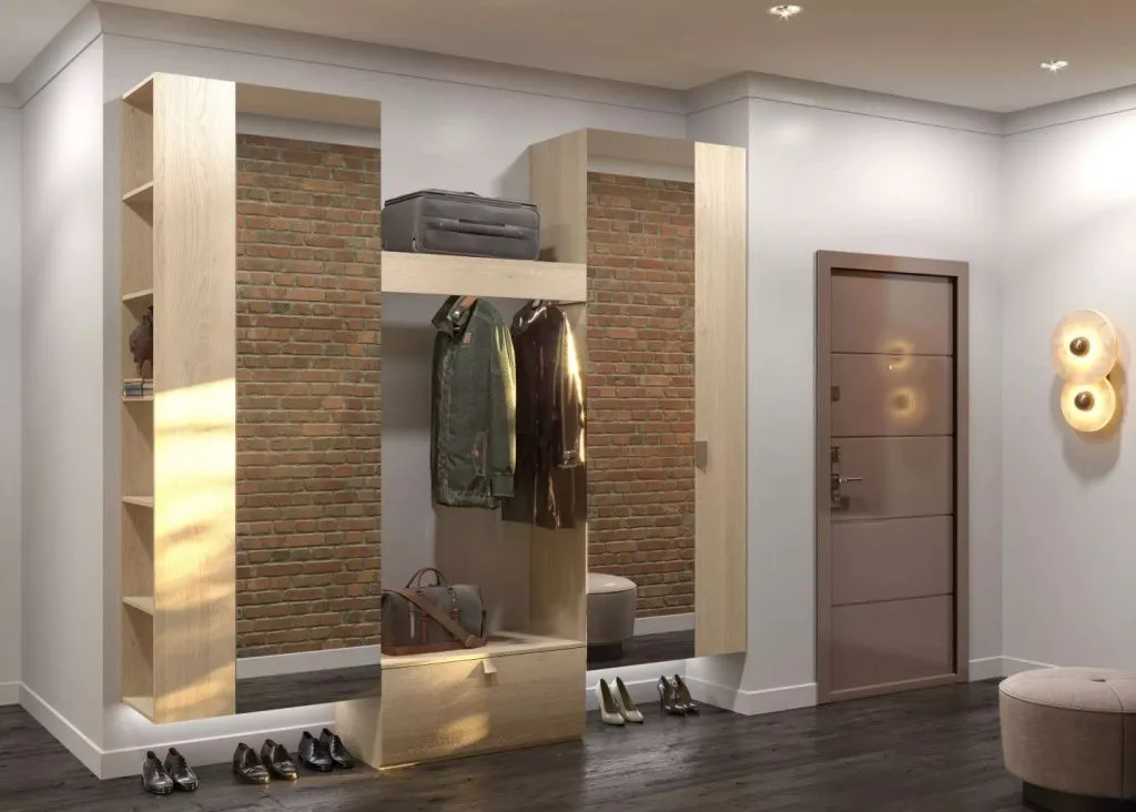 Современные производители предлагают огромный ассортимент мебели для прихожих и гостиных, в состав которой могут входить не только вместительные шкафы и полки, но и стеллажи, столики, мягкие банкетки и т.д., что позволяет оформить помещение в едином стиле. В ряде случаев при создании зоны хранения в прихожей встроенные или отдельно стоящие шкафы целесообразно заменить гардеробной. Это позволит не только с удобством разместить и хранить необходимую одежду и обувь, но и сэкономить место и средства.