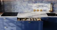 Декор Azul Imperiale — это изысканное сочетание насыщенного лазурного фона с тонкими прожилками благородных металлических отблесков. Каждая деталь этой столешницы словно создана природой, но доведена до совершенства современными технологиями. Идеальное решение для тех, кто ценит в интерьере не только эстетику, но и безупречное качество.
